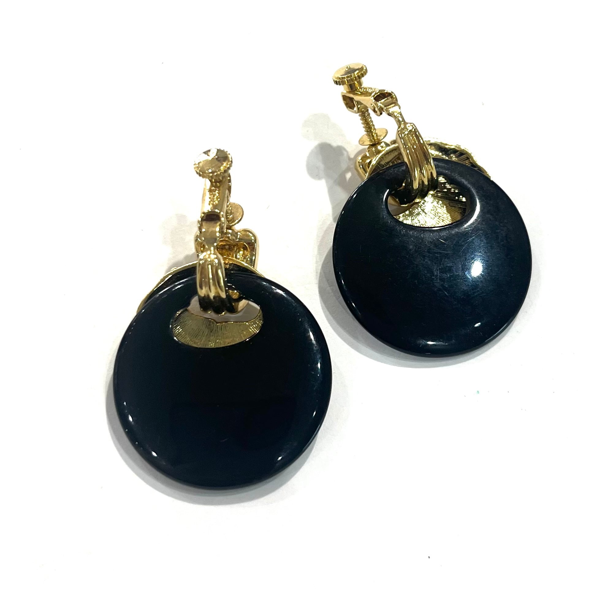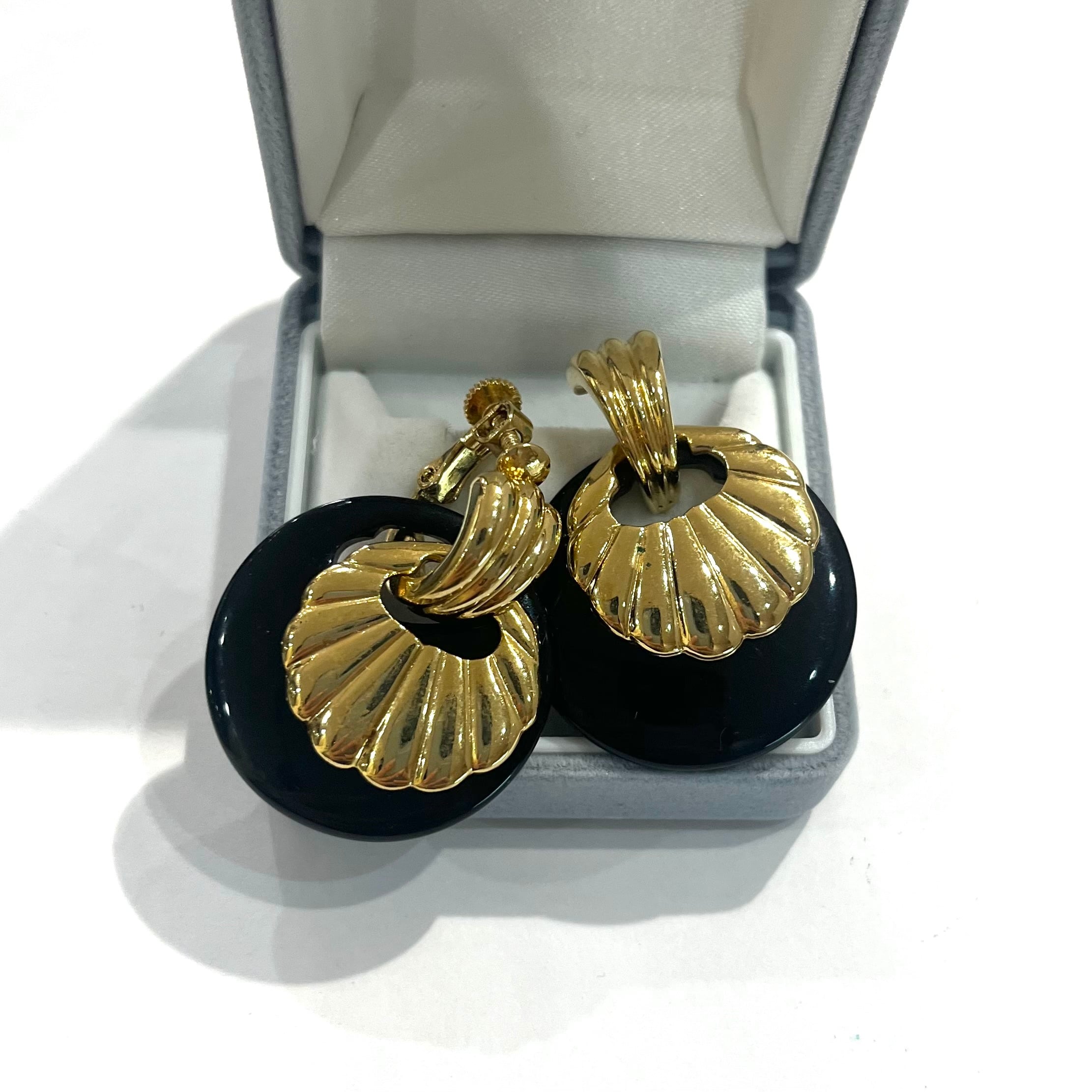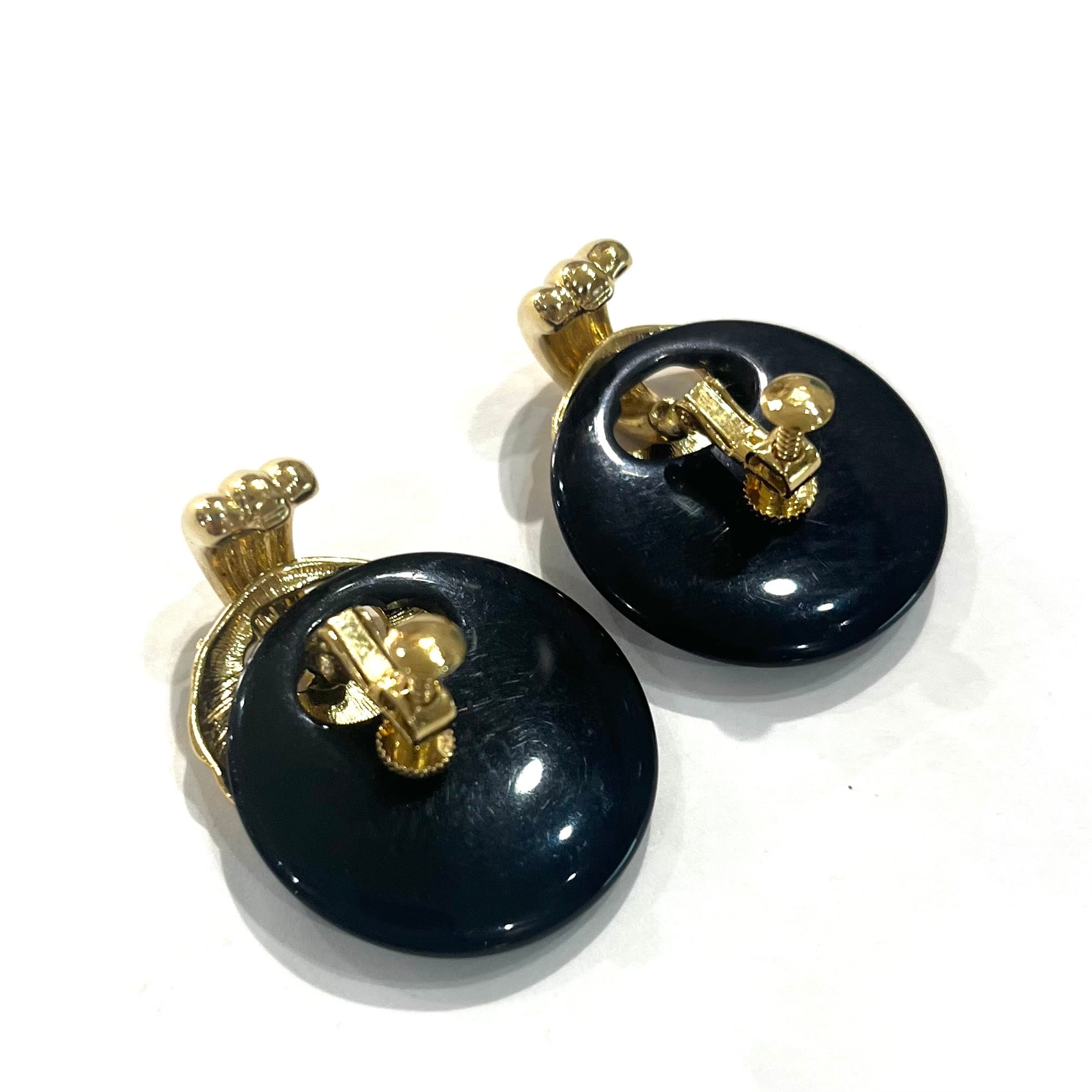 AVONイヤリング/ヴィンテージイヤリング/ブラックイヤリング/ゴールドイヤリング/大ぶりイヤリング/モードアクセサリー/レトロアクセサリー/コスチュームジュエリー/アメリカンヴィンテージ/40代ファッション/50代ファッション/一点物アクセサリー/クラシックコーデ/フォーマルアクセサリー/大人アクセサリー
