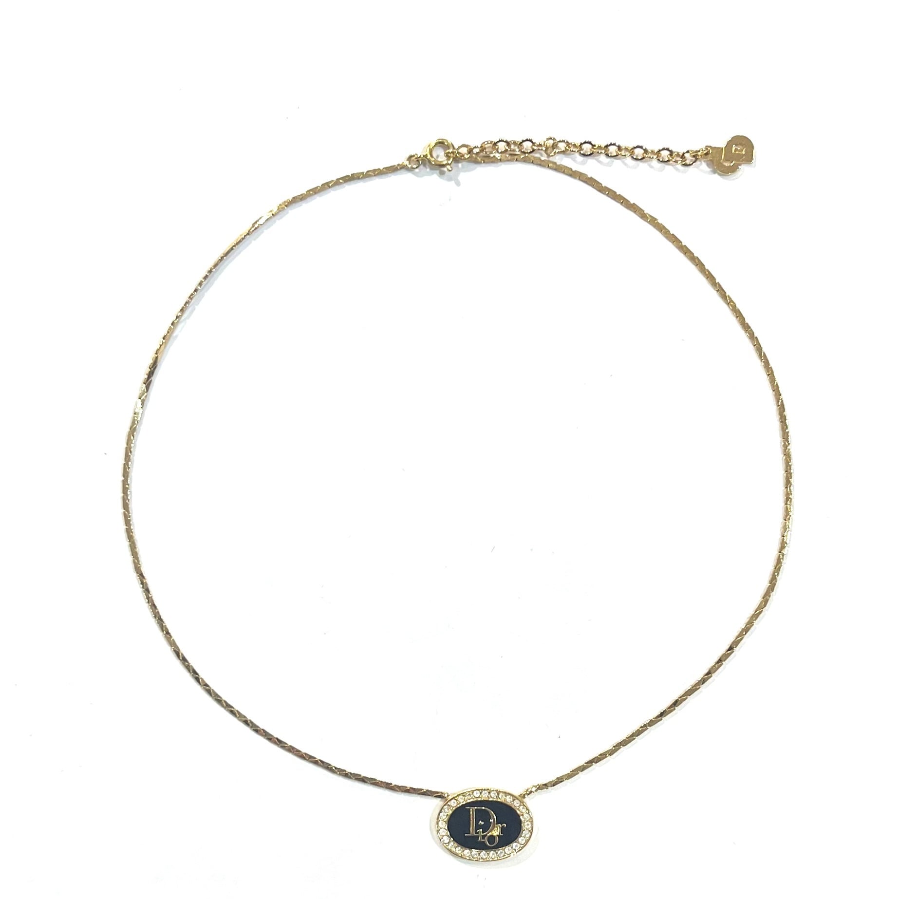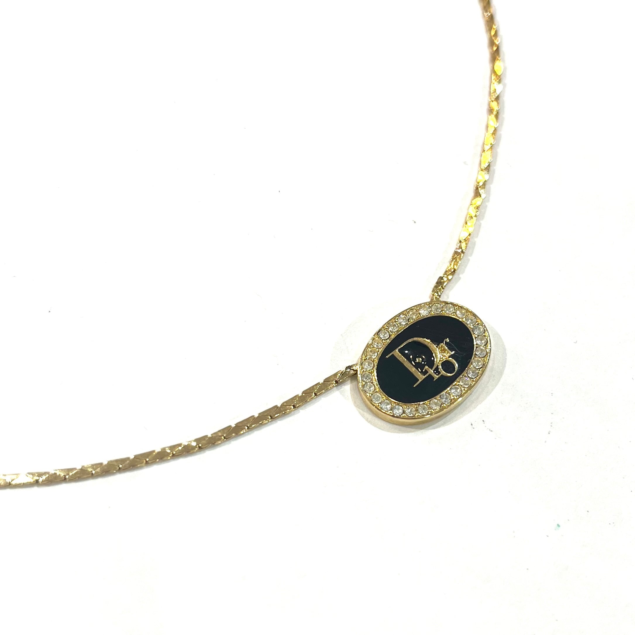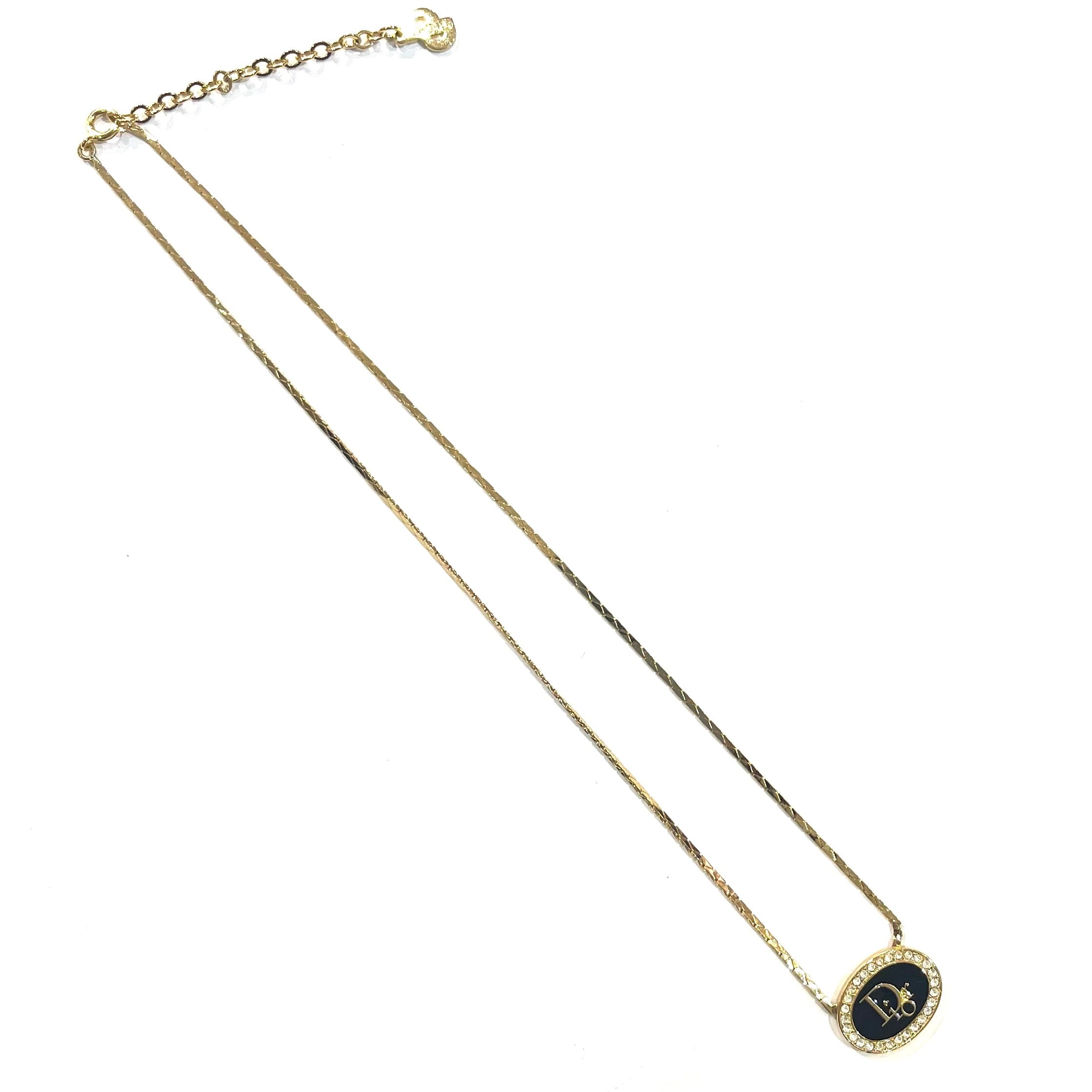 【Christian Dior】2265 DIOR ブラックロゴ ネックレス ゴールド 主役存在感/ロングネックレスメンズアクセサリーカジュアルクラシック金ゴールドペンダント ギフトアンティーク 福岡ヴィンテージショップ