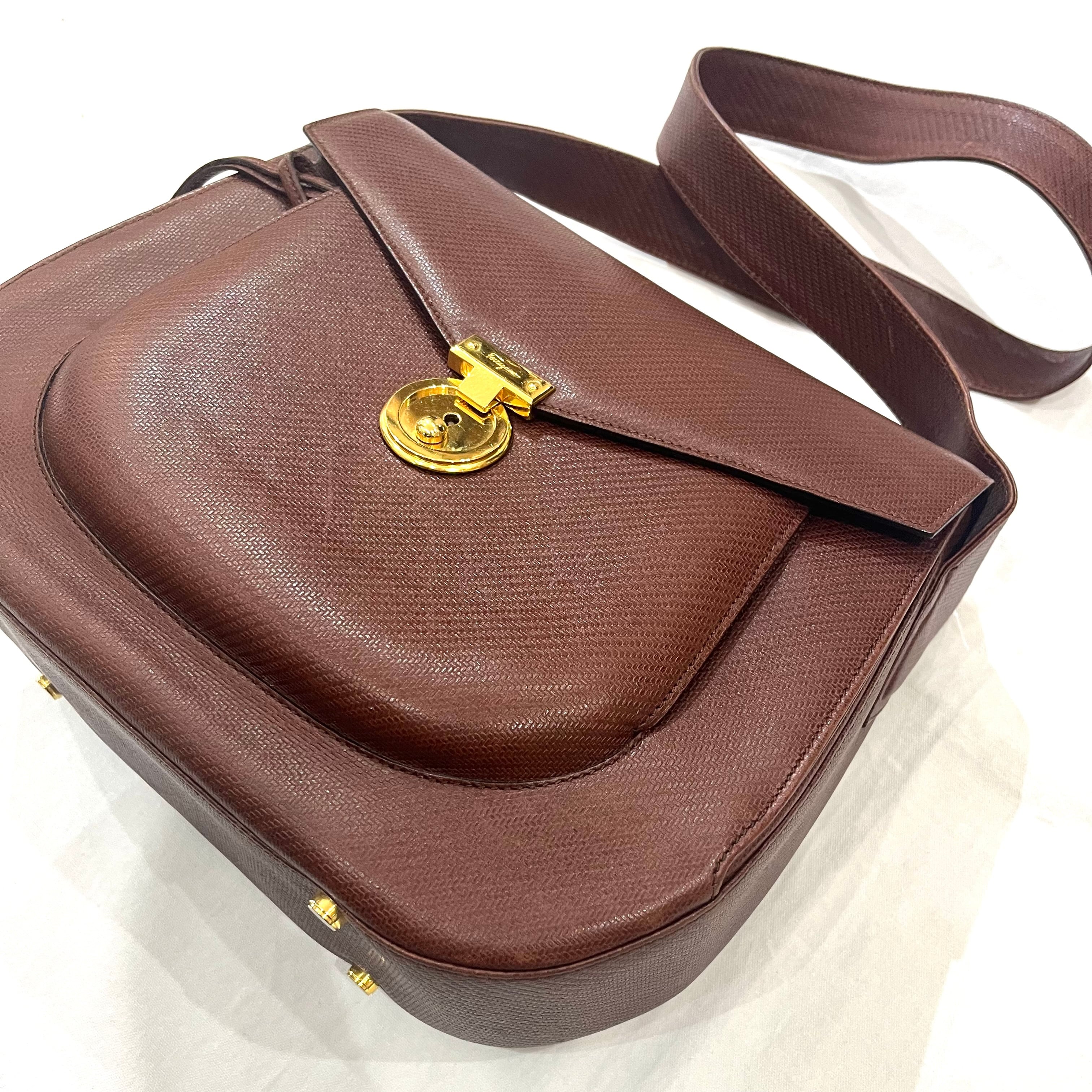 フェラガモ/SalvatoreFerragamo/フェラガモバッグ/ヴィンテージフェラガモ/レザーバッグ/ブラウンバッグ/ショルダーバッグ/ブランドバッグ/クラシックバッグ/イタリア製バッグ/大人バッグ/通勤バッグ/きれいめバッグ