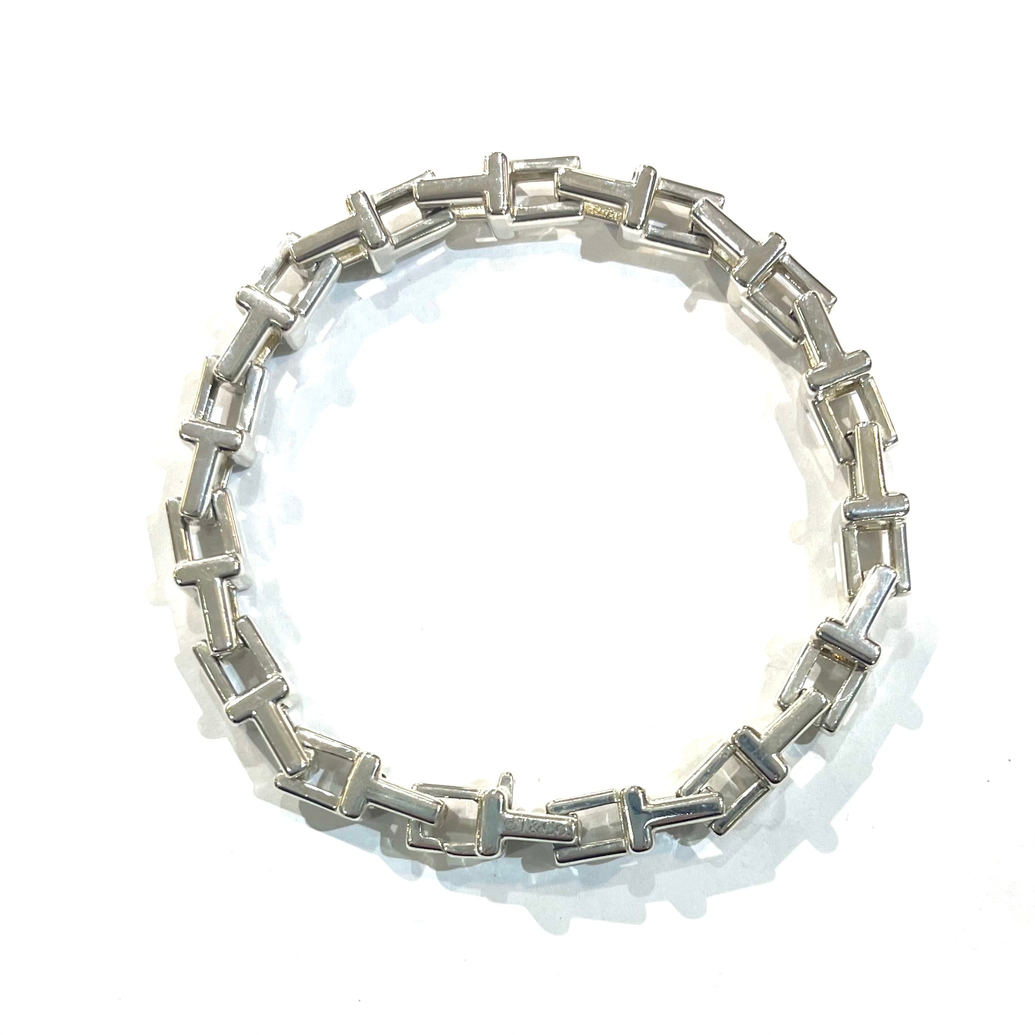 立体的に組まれた“T”パーツが連なる、ヴィンテージティファニーの中でも特に流通が少ないレアモデルです。