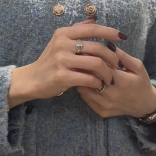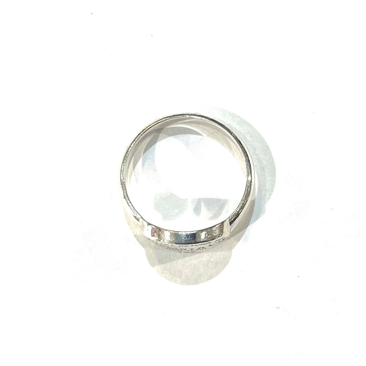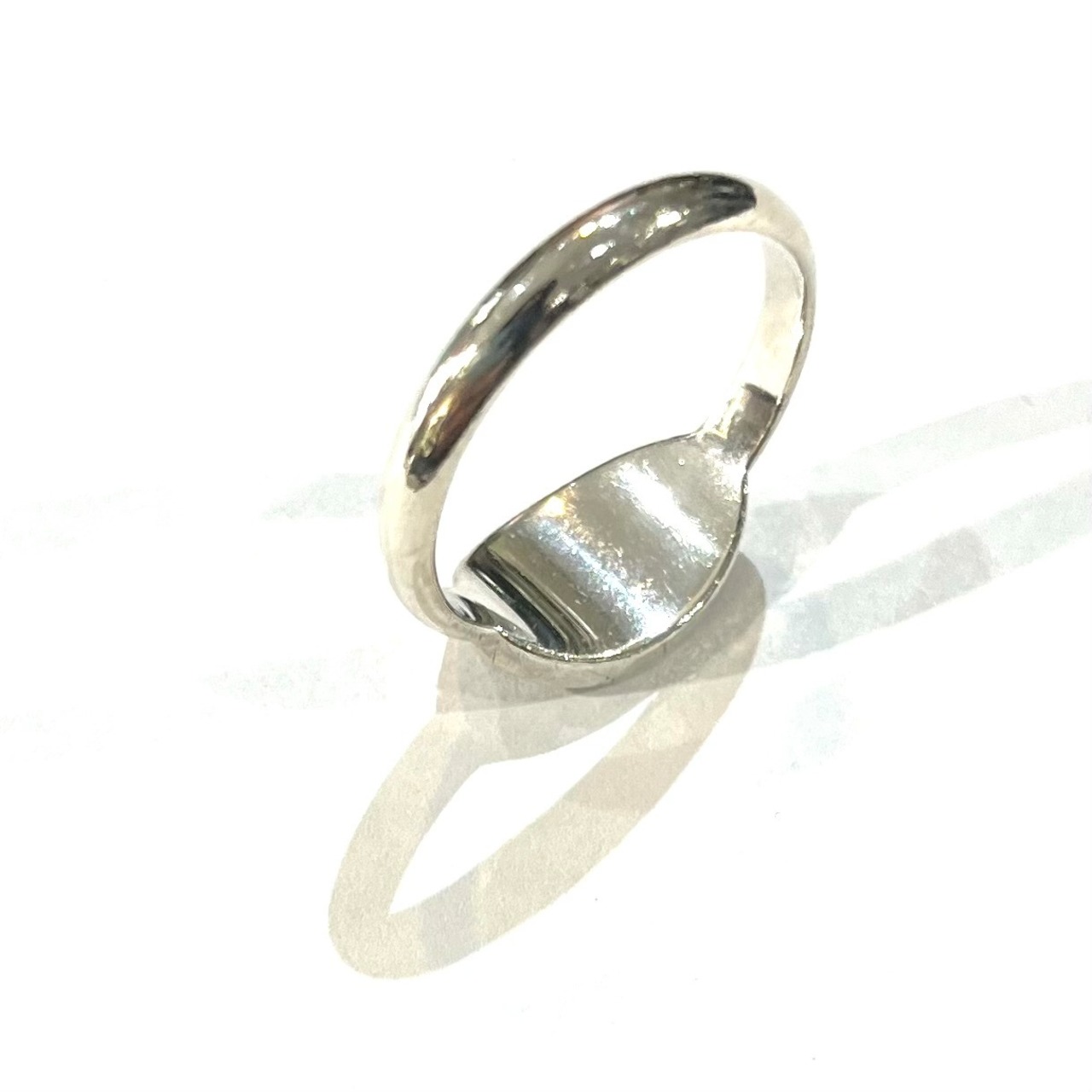 オーバル型のタグは程よいボリューム感があり、一本で着けても、他のリングとの重ね付けでもバランス良く決まります。