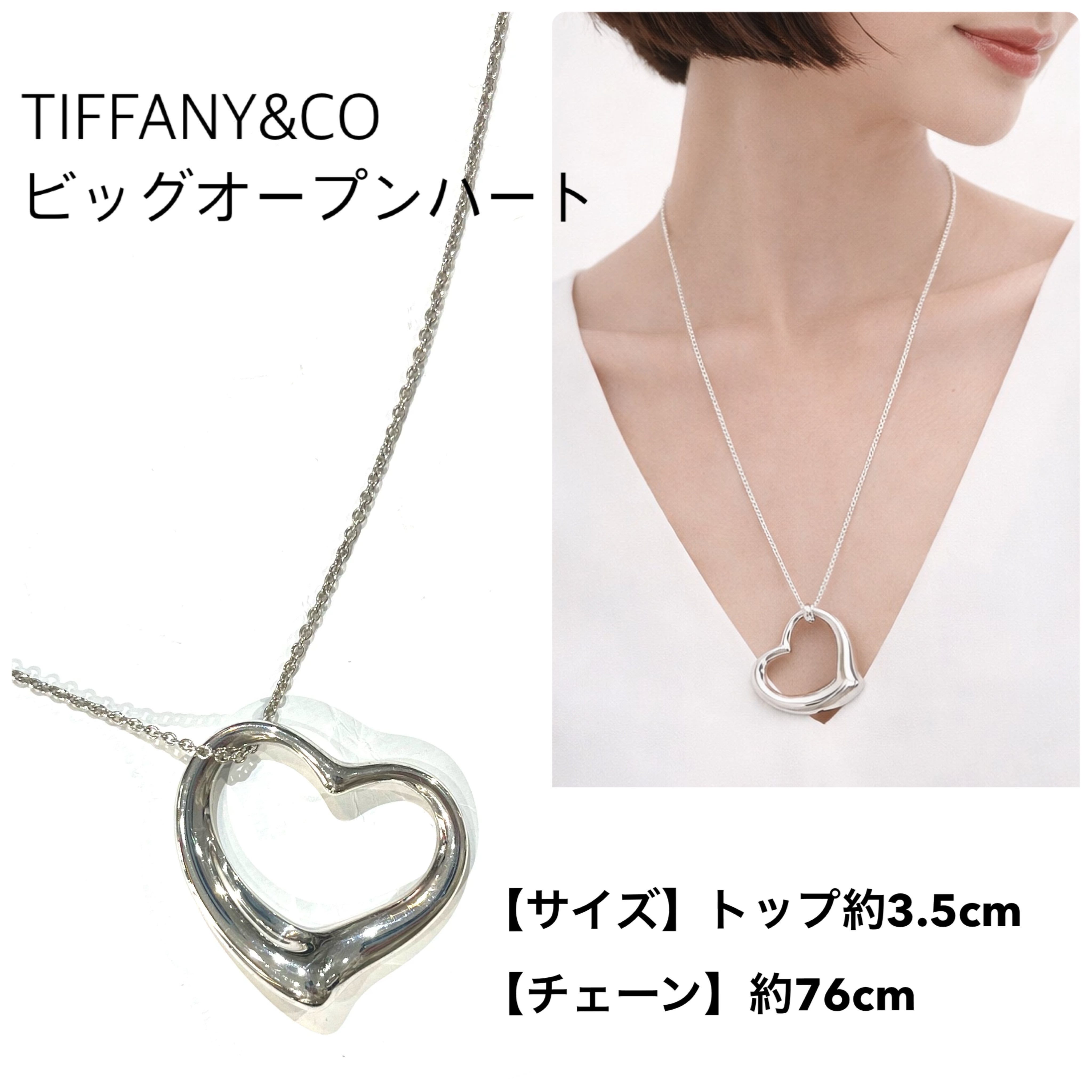 【TIFFANY&CO.】 名品希少BIGオープンハート ペンダント 76cm ロングチェーン/3.5cmラージサイズ/スターリングシルバーSV925ティファニー ネックレス ロング ネックレス ヴィンテージティファニー福岡 ヴィンテージティファニーアクセサリー