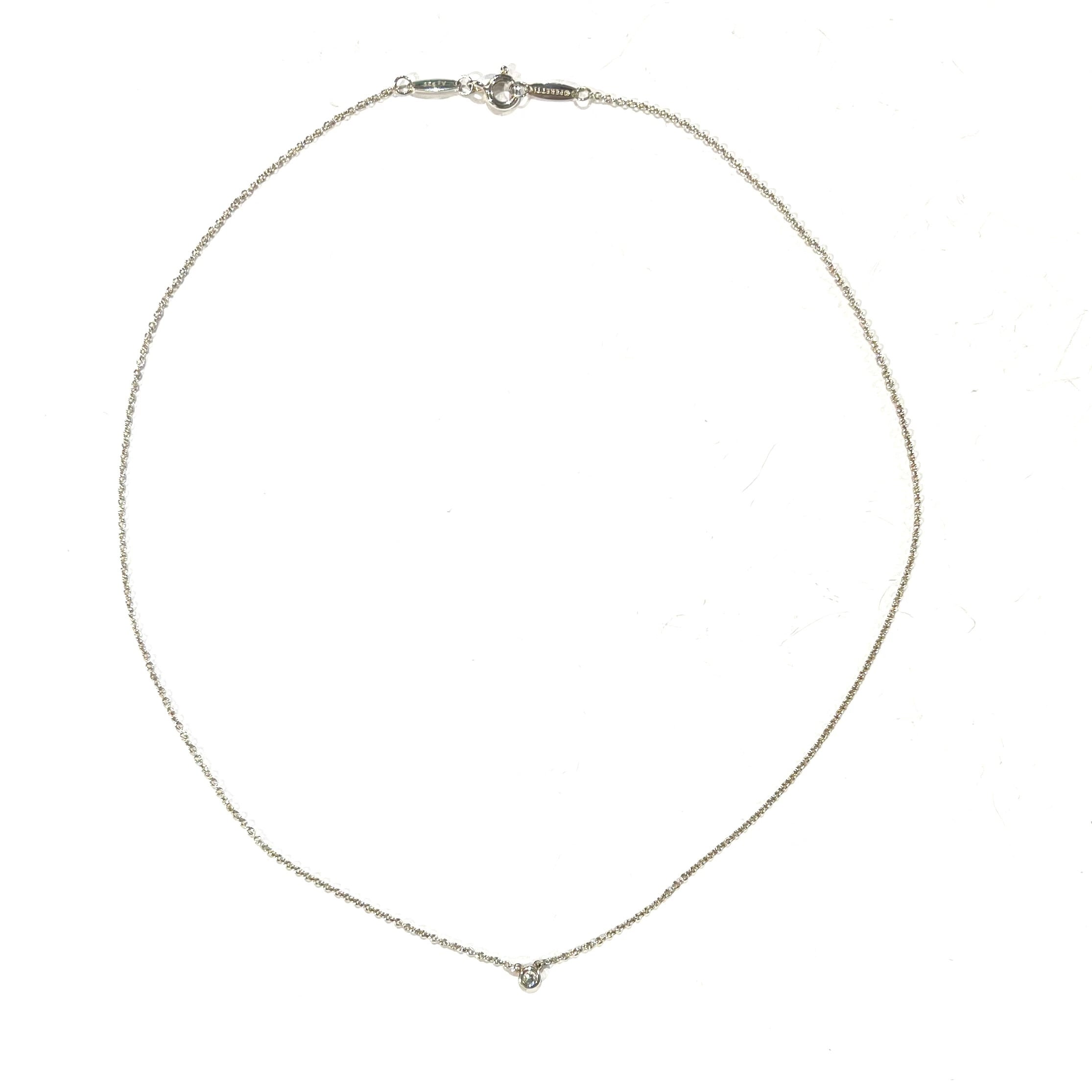 【TIFFANY&CO.】2366エレサ・ペレッティ ダイヤモンド バイザヤード/シルバー925一粒ダイヤ/極美品 ペンダント ネックレス 定番一生物 プレゼント誕生日記念日 お守りネックレス 誕生石 メンズネックレス ヴィンテージシルバーアクセサリー 定番