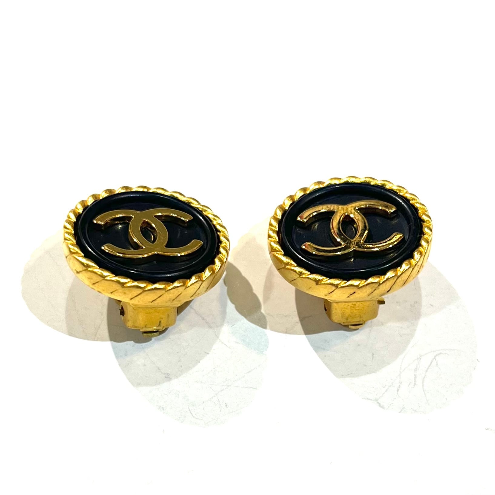 【CHANEL】2364 シャネル96年製 ヴィンテージ ブラックゴールドココマーク ラウンドイヤリング 2.1cm/永遠に色褪せないアイコンジュエリーヴィンテージショップ福岡アンティークショップ