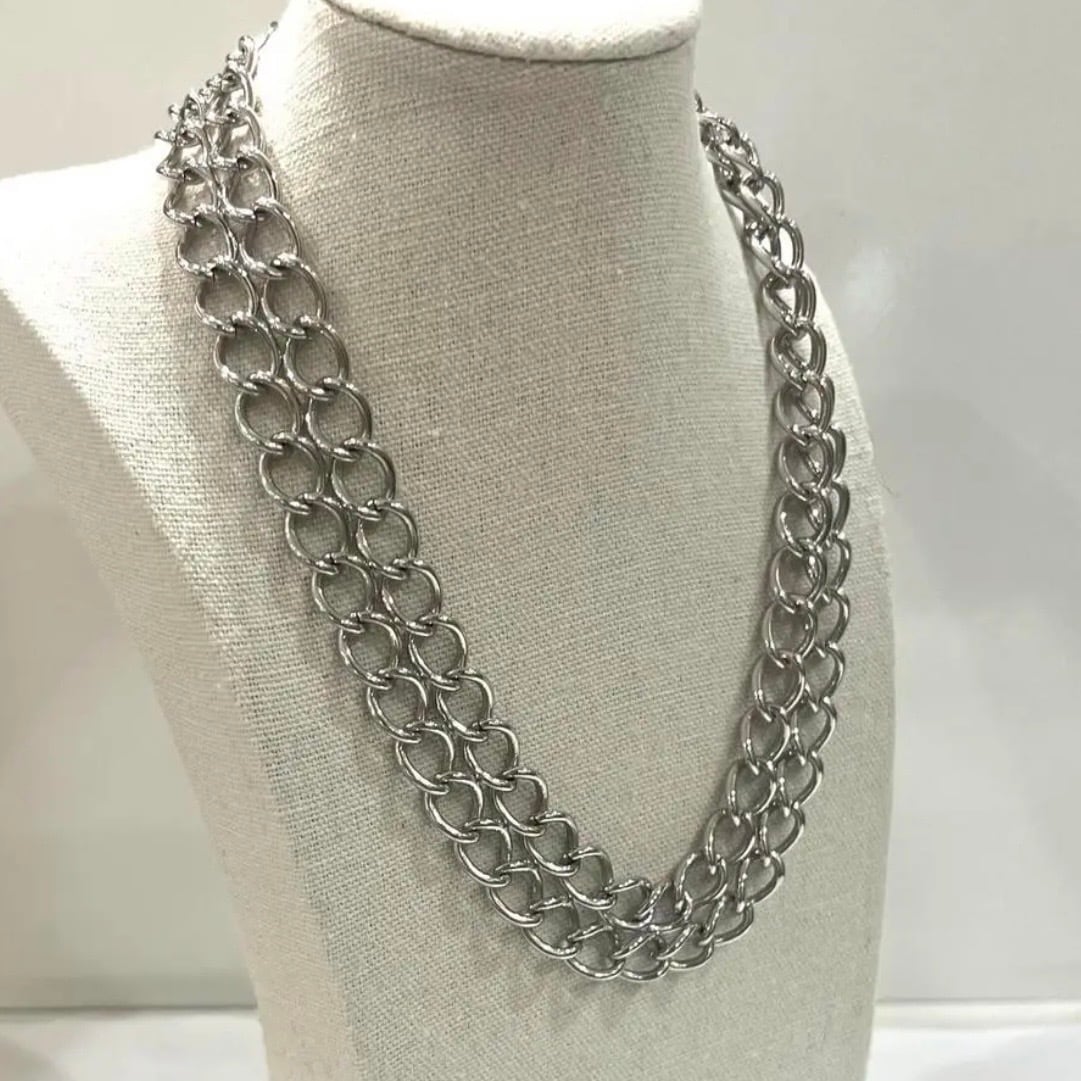 ヴィンテージネックレス/Monet/モネ/チェーンネックレス/シルバーアクセサリー/メンズネックレス/ユニセックスアクセサリー/ロングネックレス/80cmネックレス/重厚チェーン/ヴィンテージアクセサリー/福岡ヴィンテージ/天神アクセサリー/大人カジュアル/シンプルコーデ/一点物アクセサリー