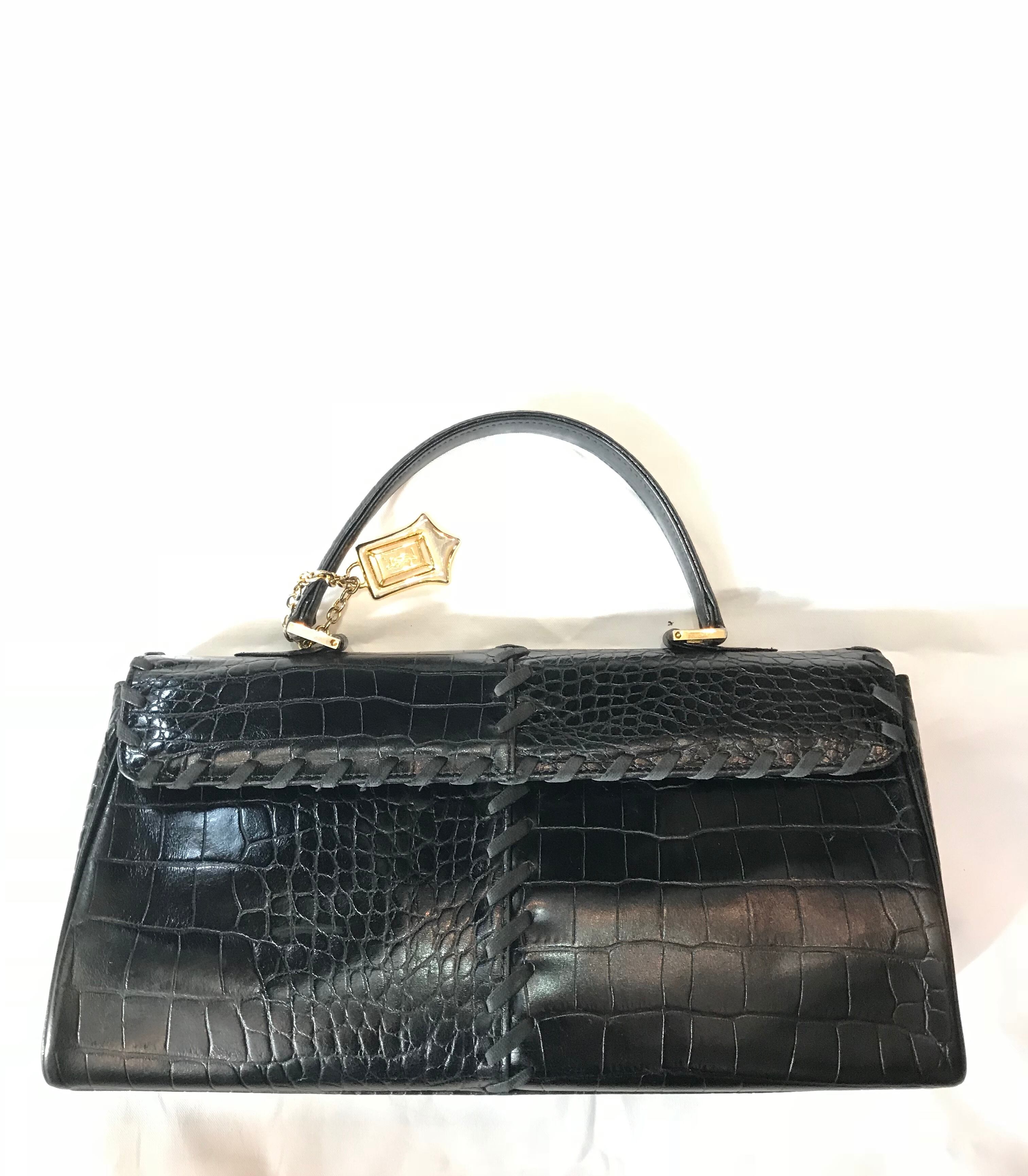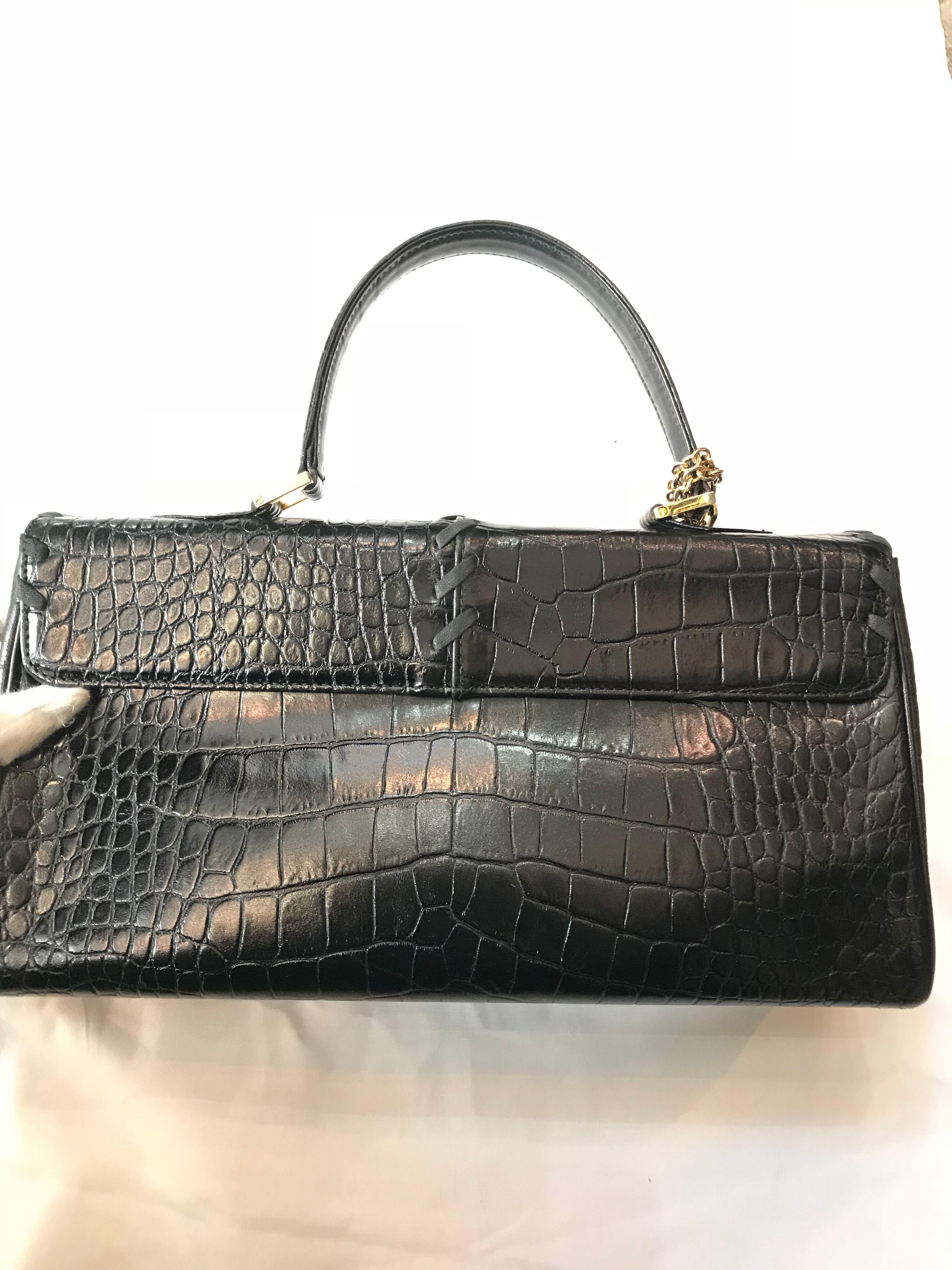 YVES SAINT LAURENT イヴ・サンローラン クロコ型押し レザーハンドバッグ05244 本革