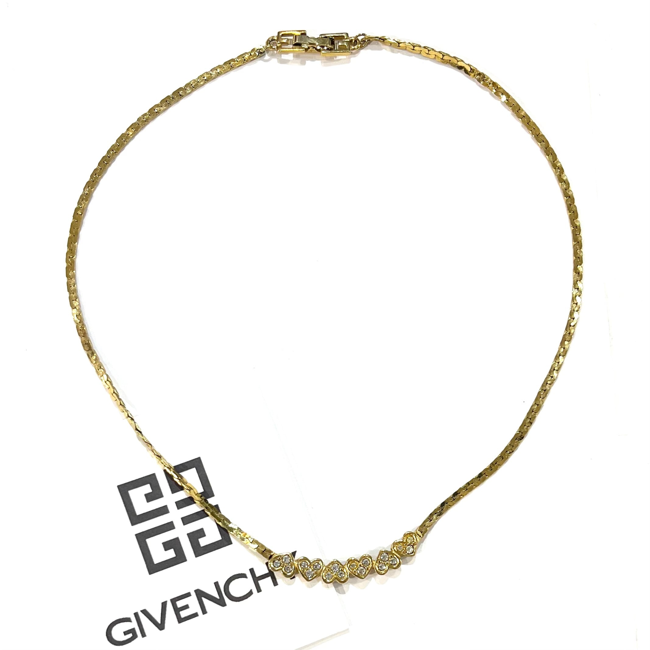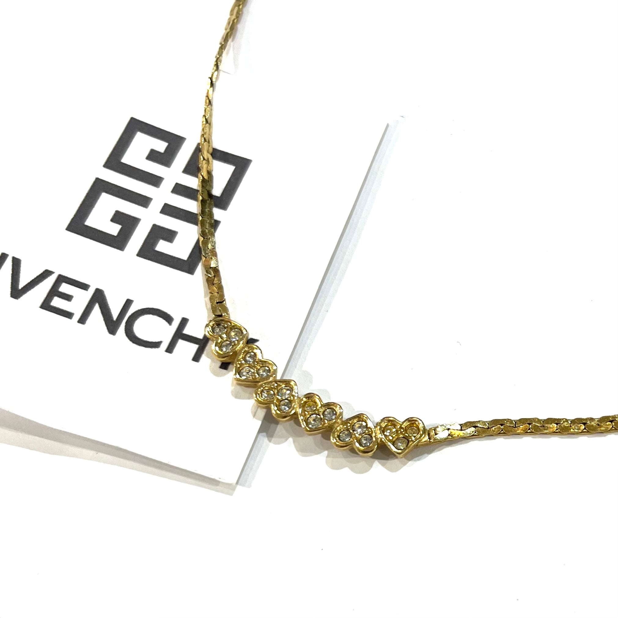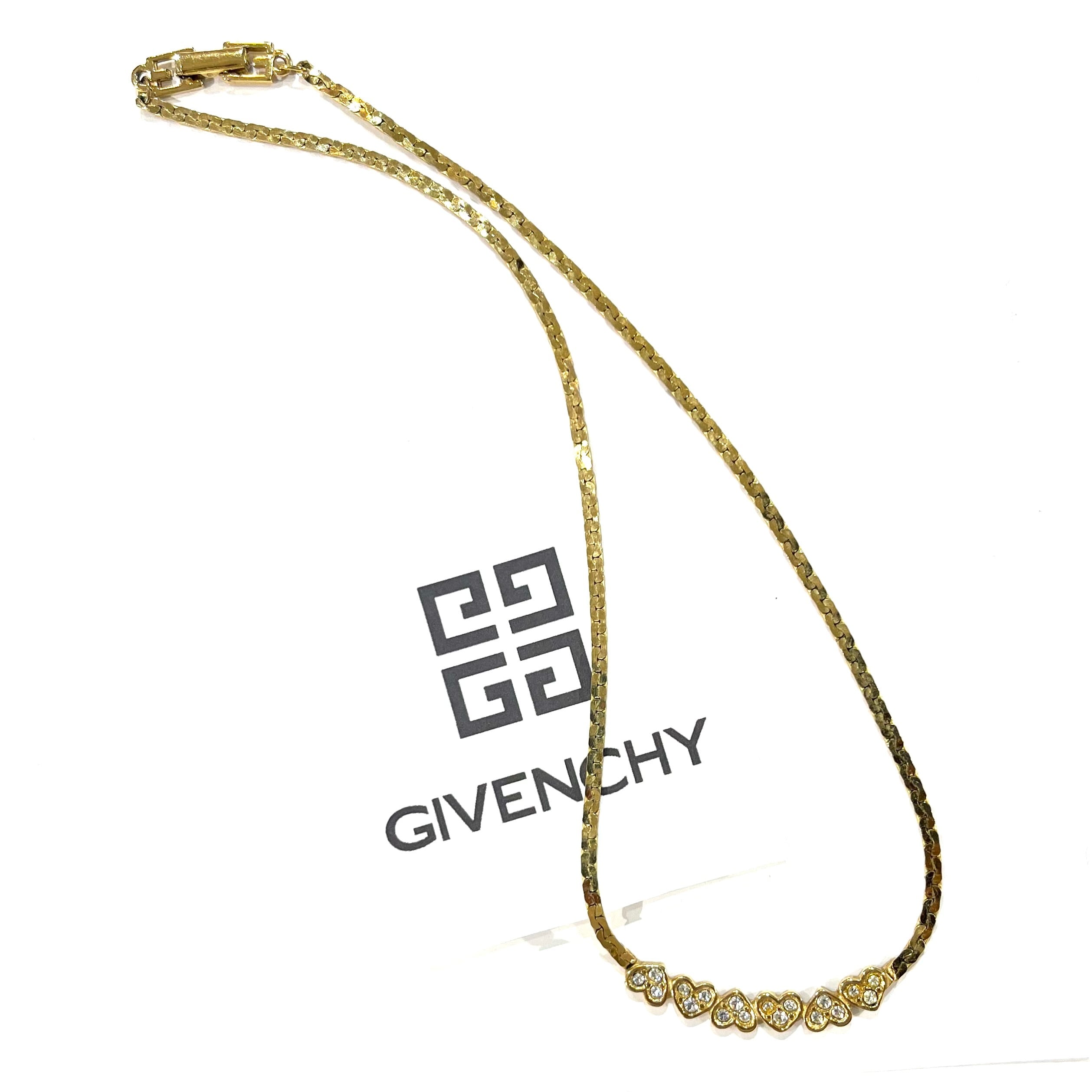 GIVENCHY/ヴィンテージネックレス/ゴールドネックレス/ハートモチーフ/フラットチェーン/スネークチェーン/デコルテジュエリー/上品アクセサリー/一点物/