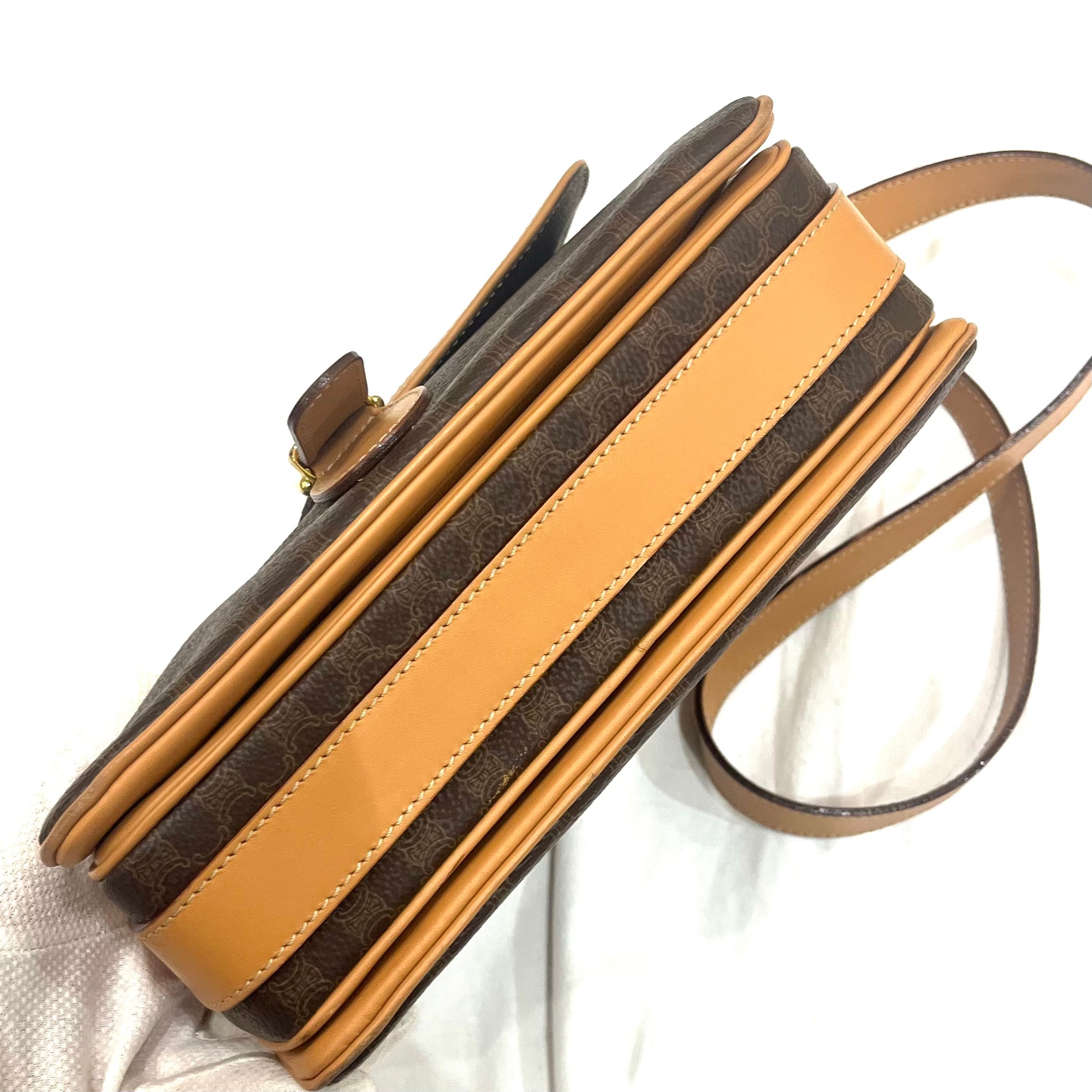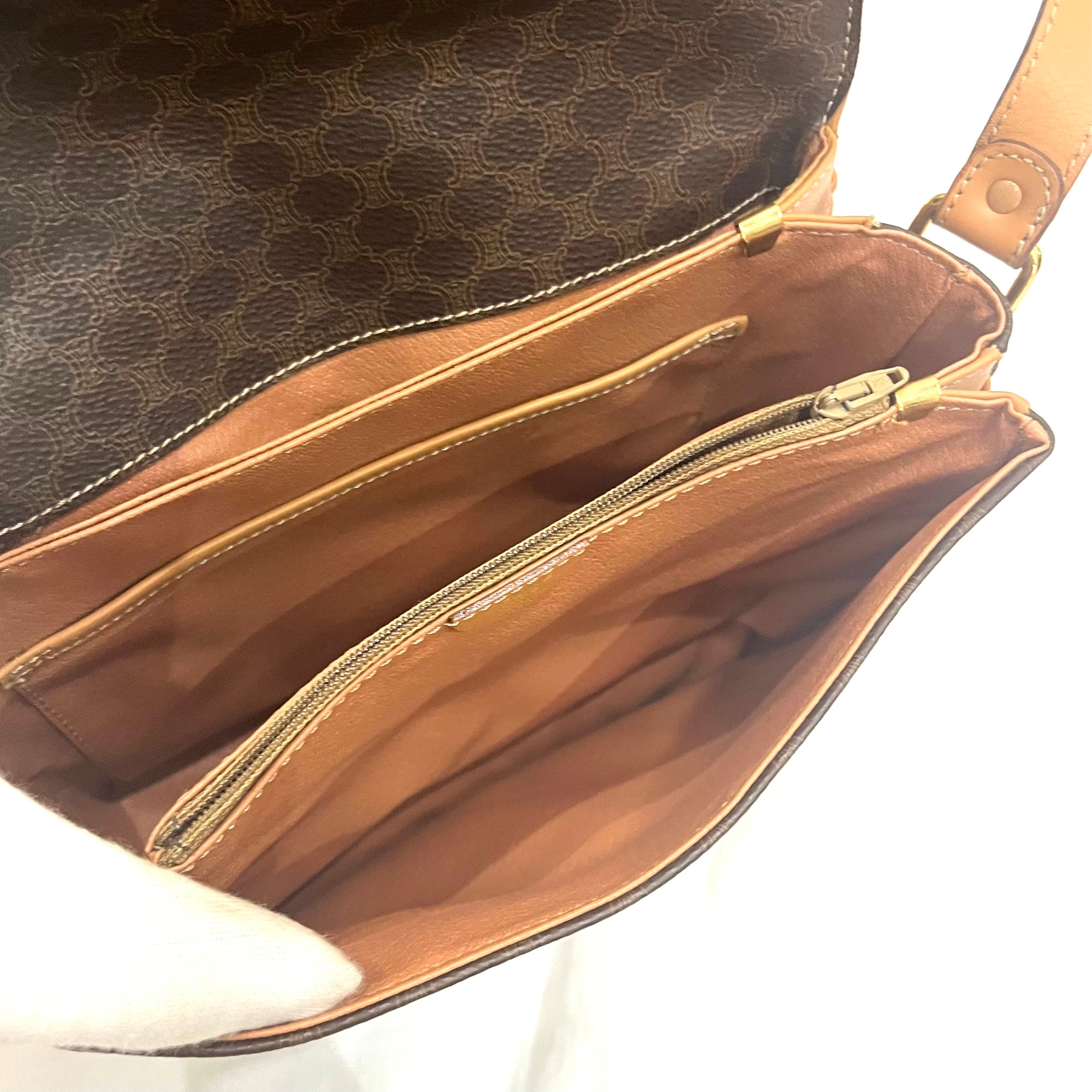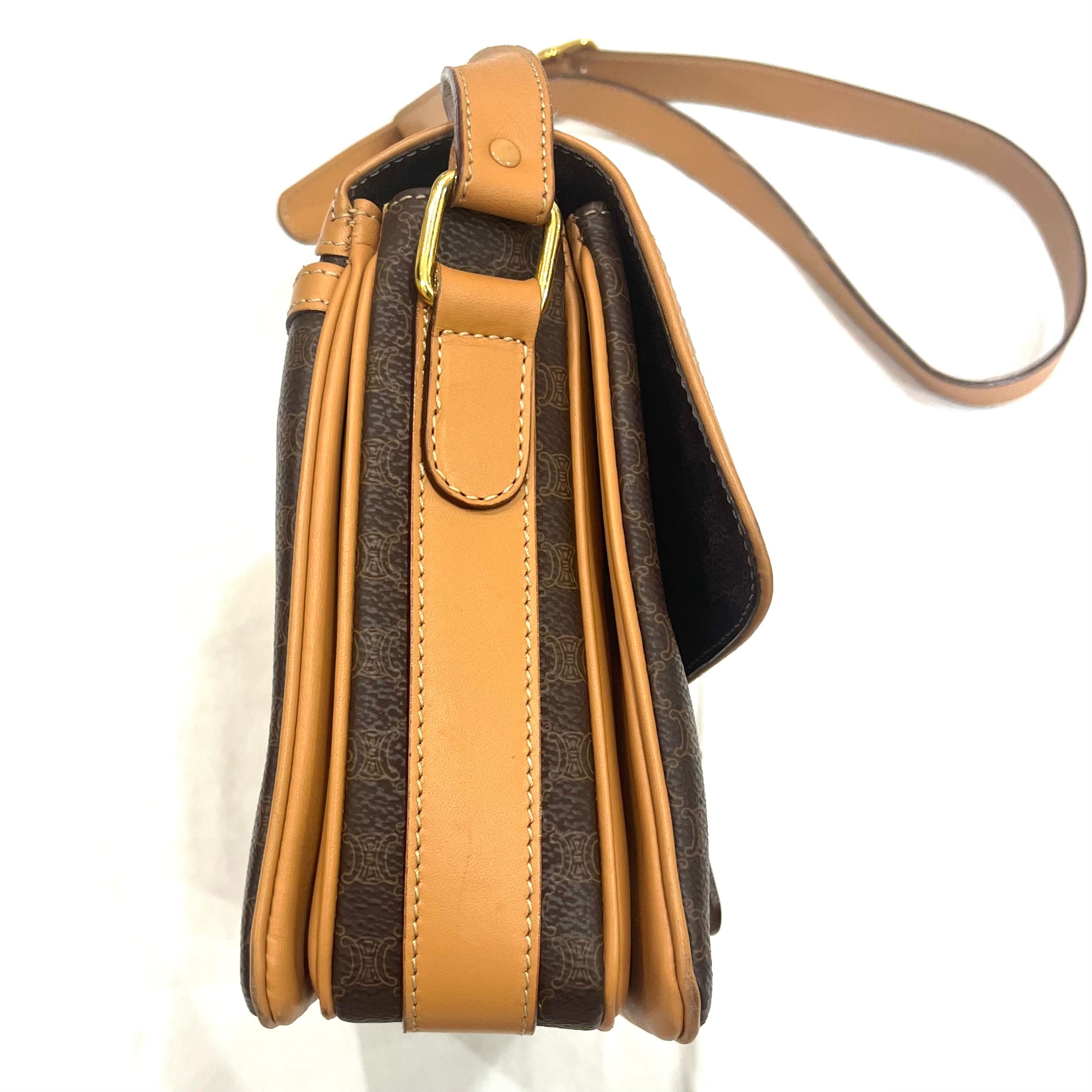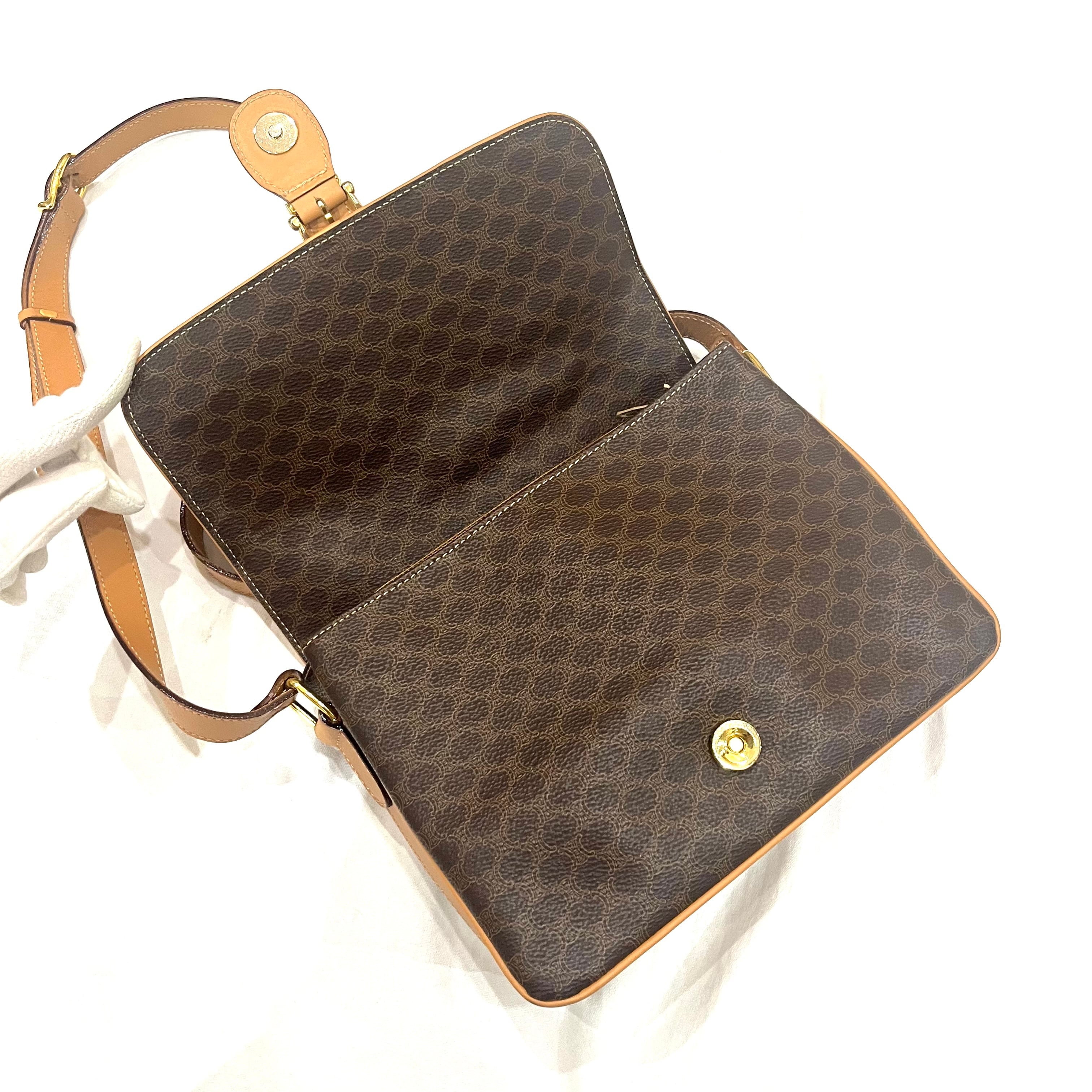 【CELINE】2407 セリーヌマカダム ショルダーバッグ/ブラウン×pvcヌメレザー/クラシックを纏う名品/ヴィンテージ セリーヌ 本革 pvc 夏バッグ クラシック