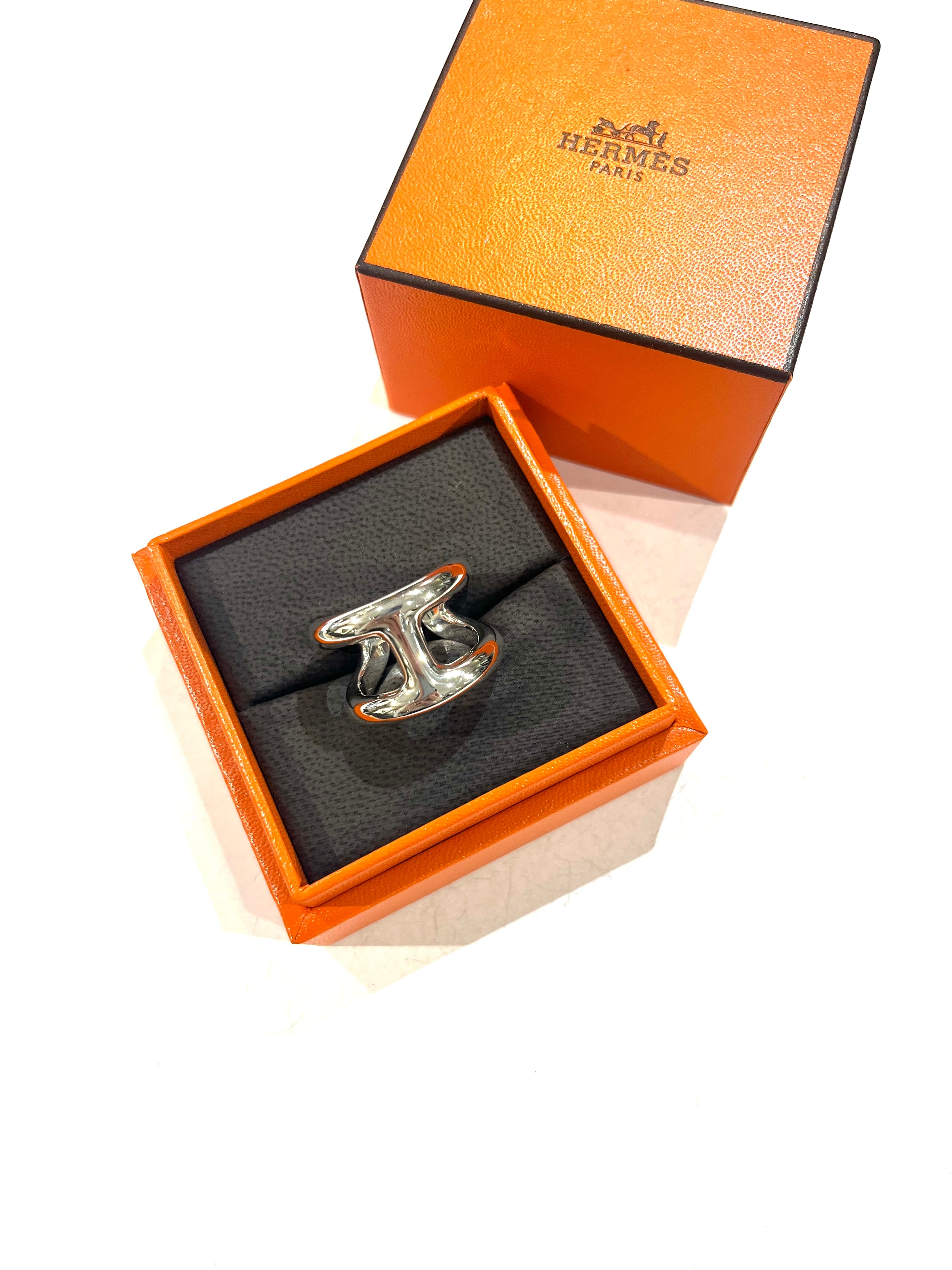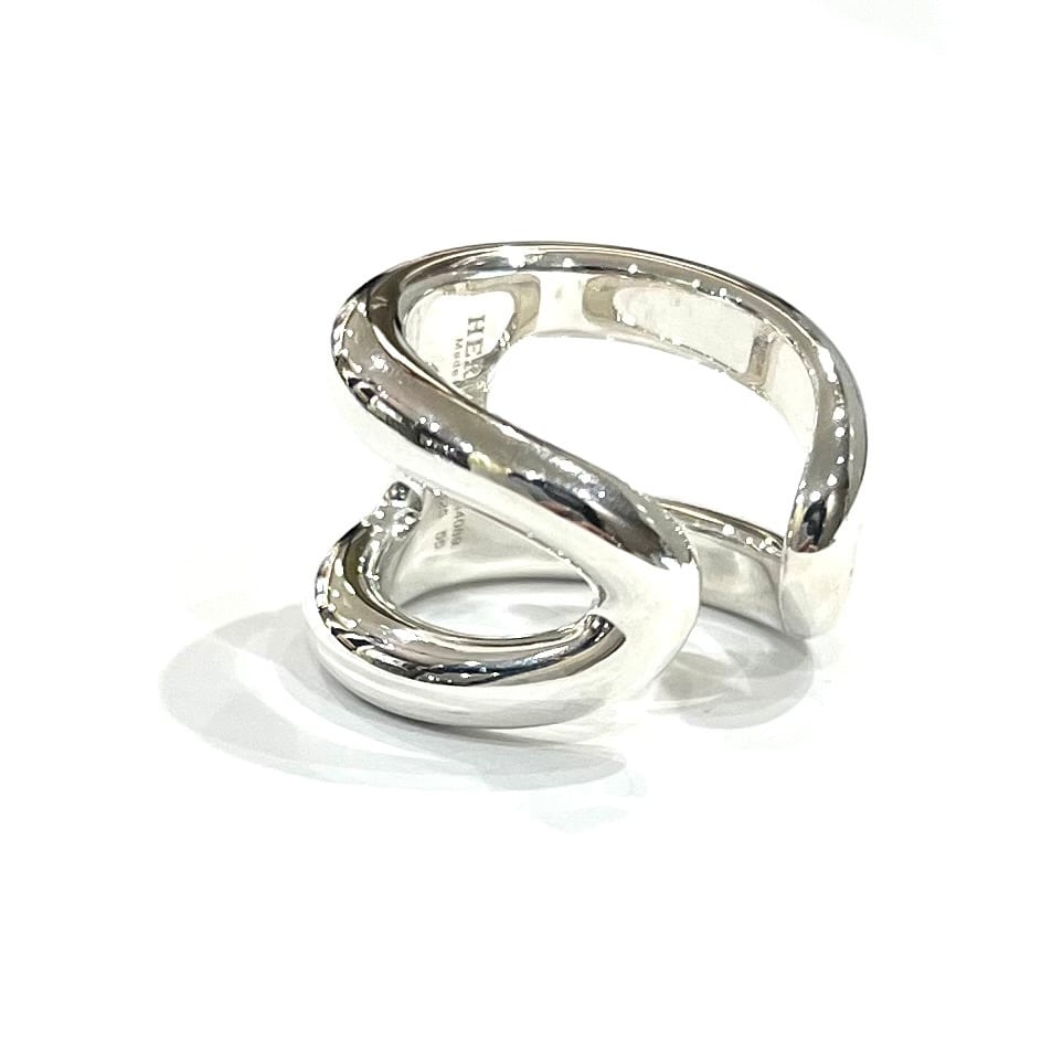 希少【HERMÈS】【約15-16.5号】指輪ブランド オスモズGMリング/シルバー/立体構造が魅せる現代エルメスの象徴リング シルバーリング メンズ指輪 大きいサイズ ボリュームリング エルメス メンズリング ヴィンテージシルバー福岡