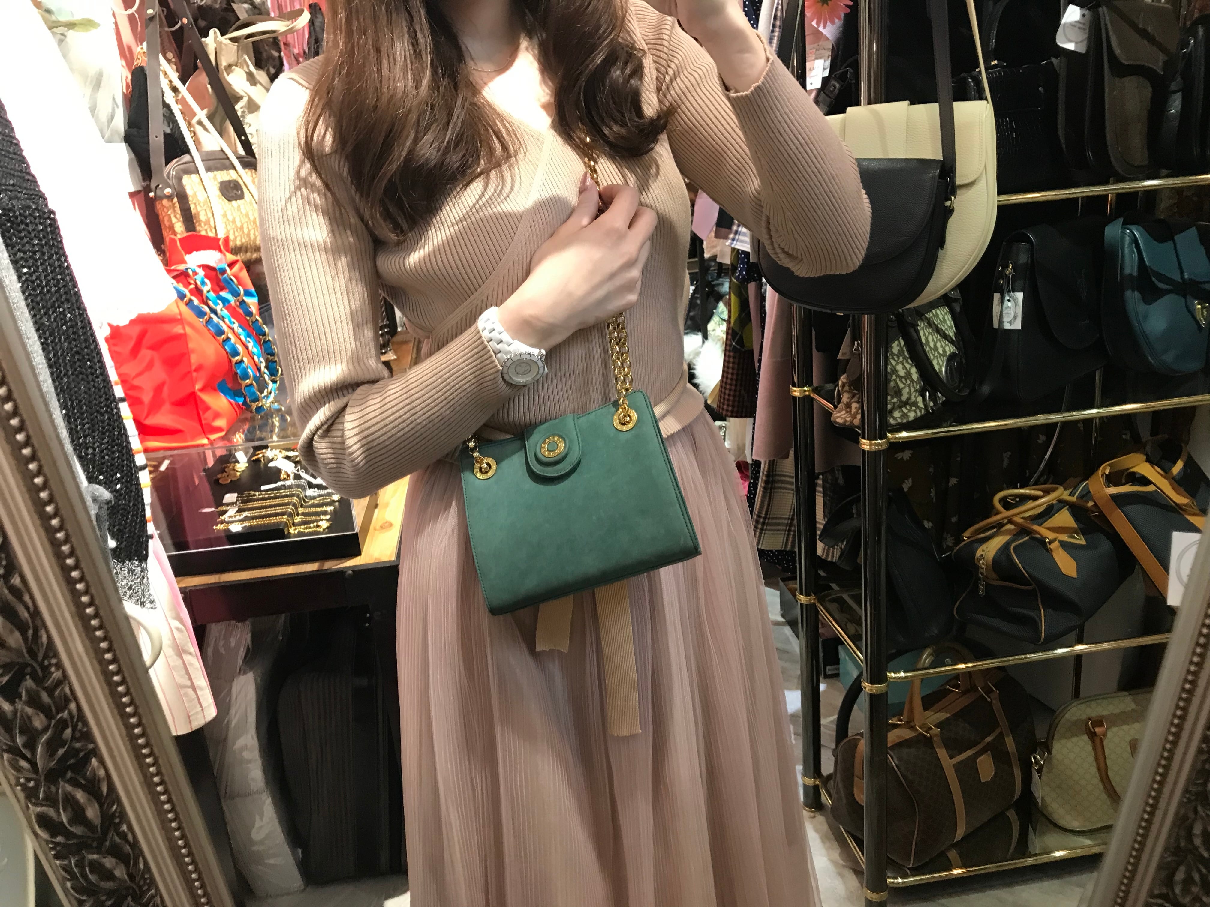 開閉部分、チェーン部分に施されたラウンドモチーフは主張しすぎずコーディネートを飾ります。