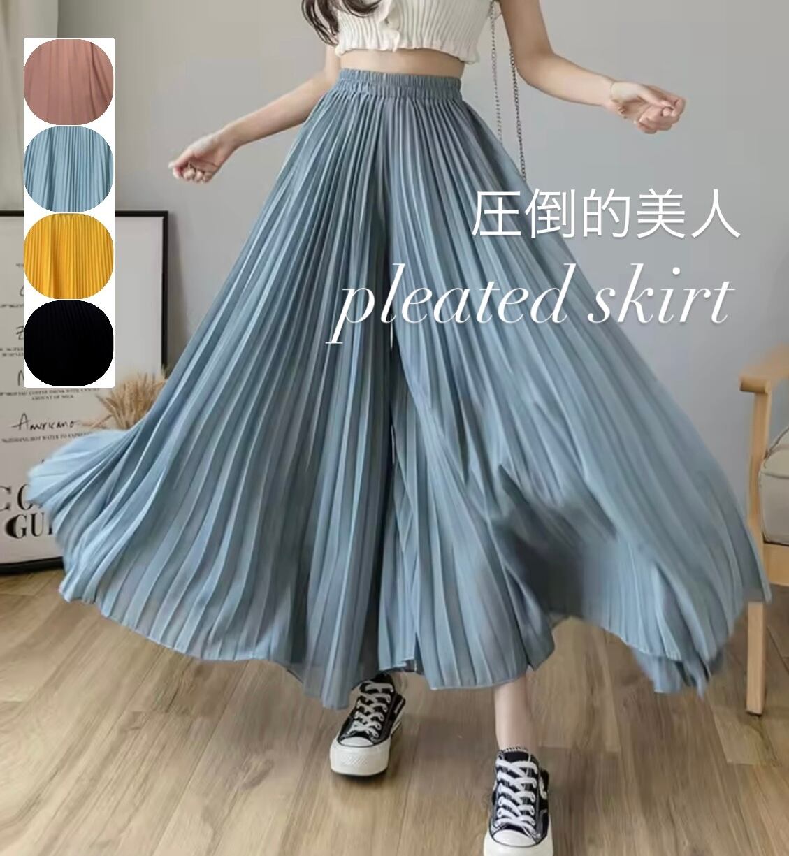 即発送✿︎5色プリーツスカート ロング丈 フレア ナチュラル カジュアル マキシ