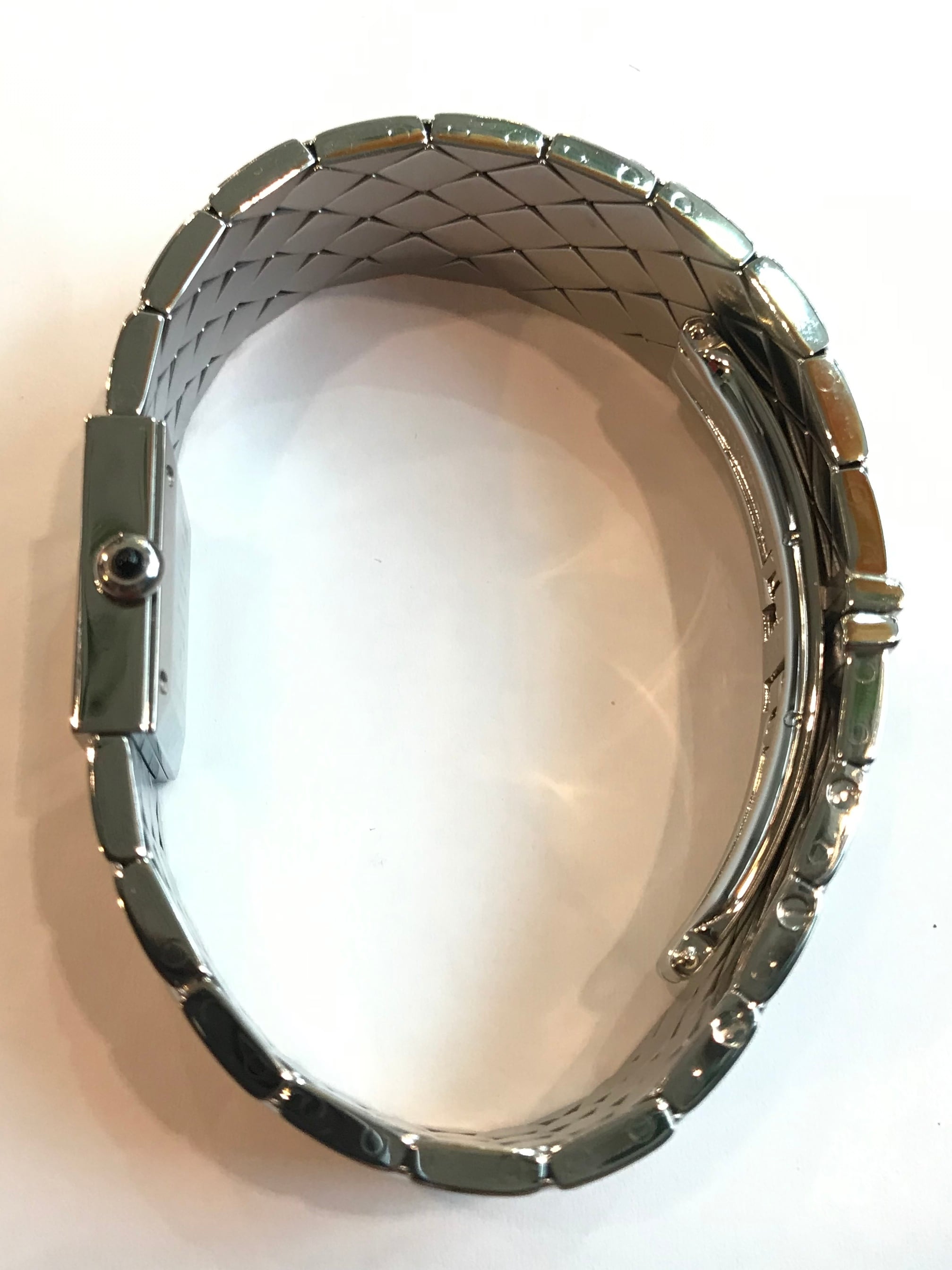カジュアルかつ華やかさを併せ持つとブラック文字盤にマトラッセデザインのブレス。