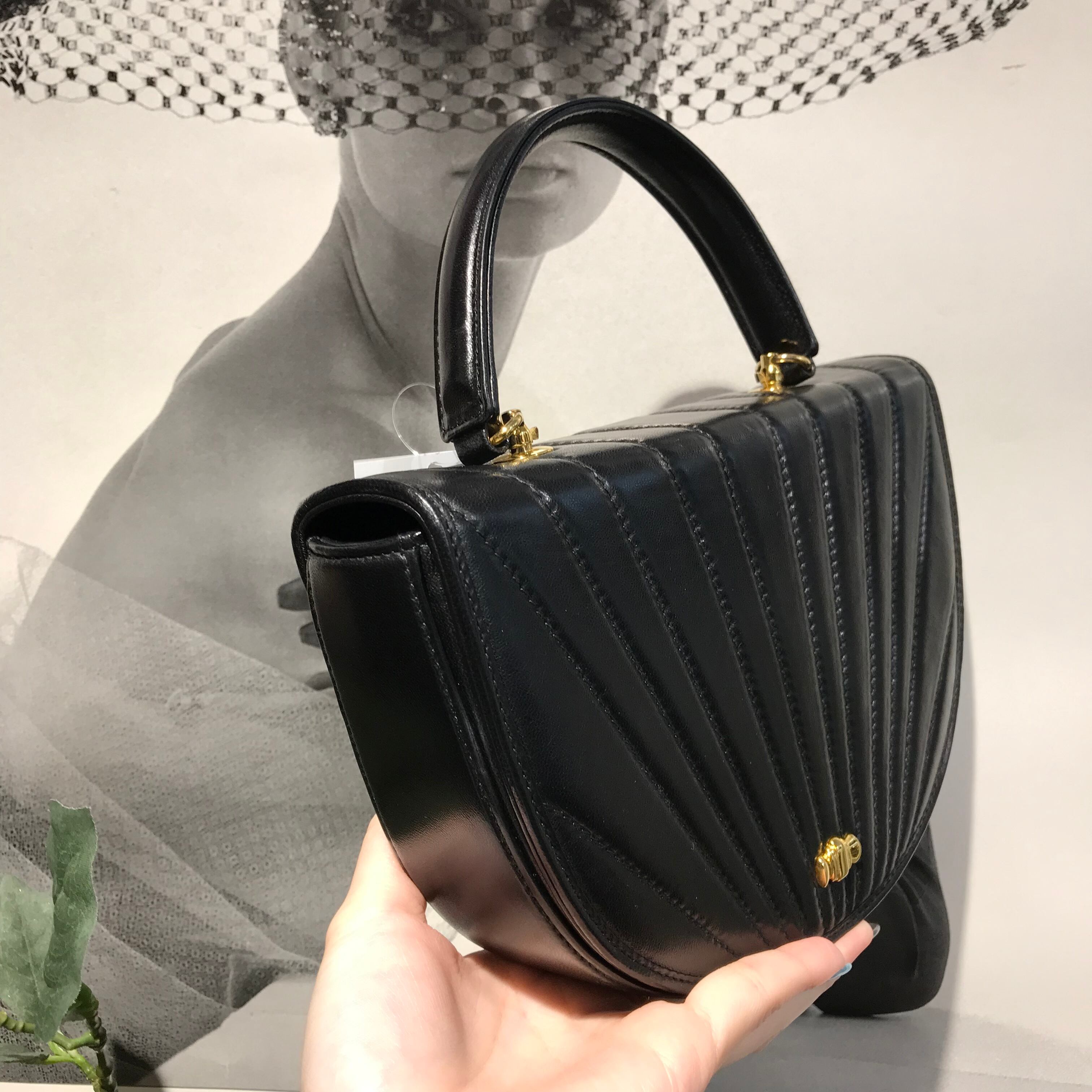 開閉部分に施されたゴールドモチーフ、まるでシェルのようなコロンとしたデザインがコーディネートを飾ります。