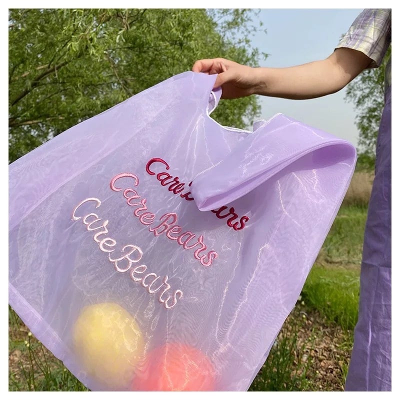 即納✿︎お洒落3色★オーガンジー 刺繍トートバッグ エコバッグ ナチュラル カジュアル 夏バッグ 折りたたみ アースカラー ギフト プレゼント 花柄 フラワー 文字