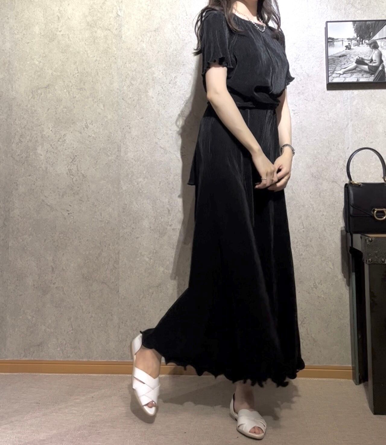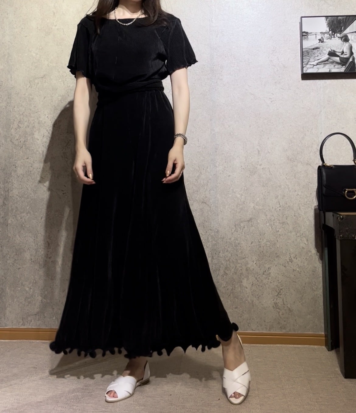 即発送★ 2piece 2色 プリーツセットアップ フレア ロング ふんわり ゆったり ナチュラル ルームウェア ウエストゴム
