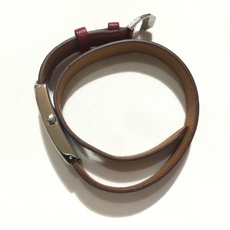 新作割★ HERMES スクエア 文字盤 ローズカラー腕時計 エルメス watch レザー
