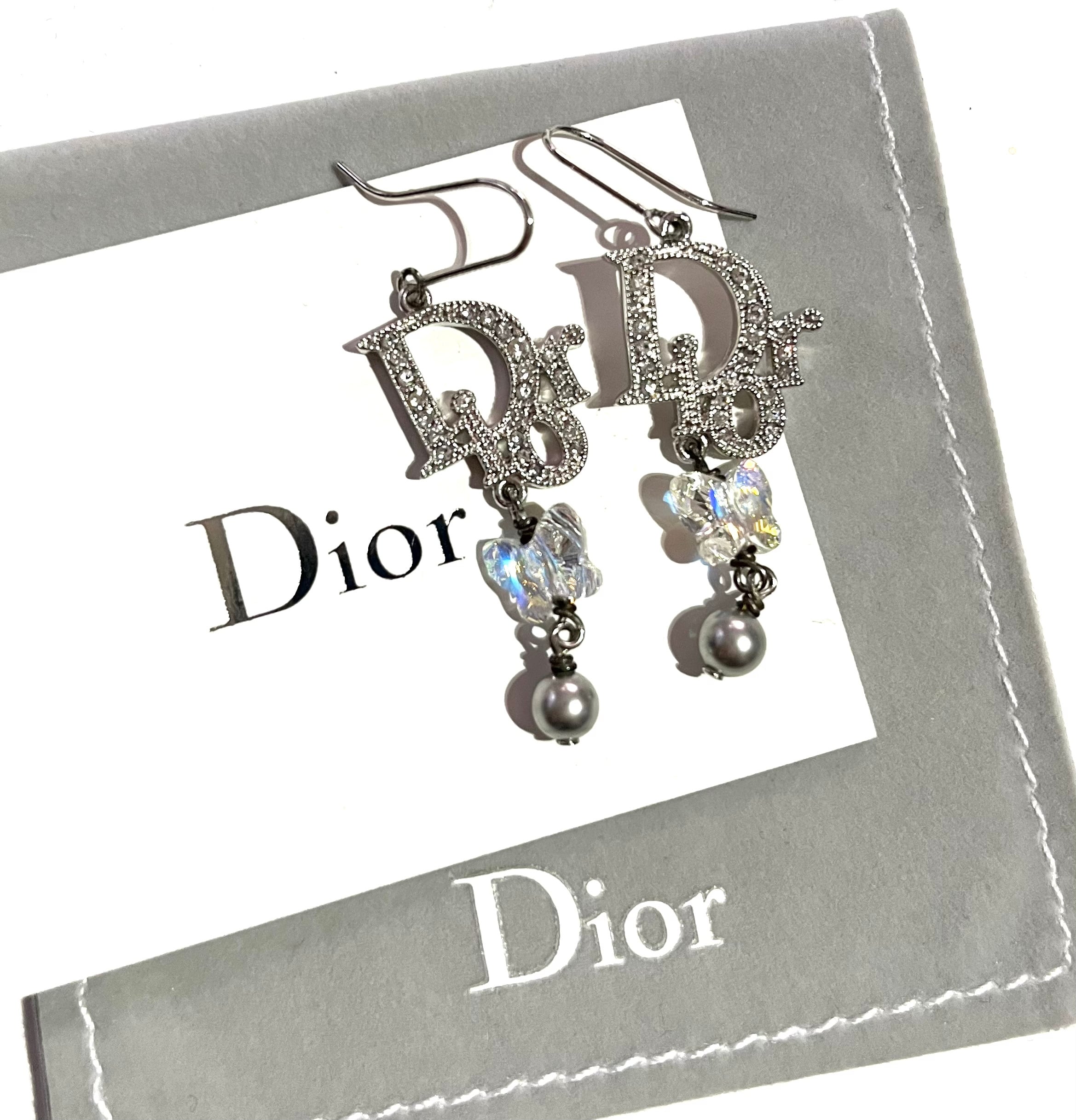 Christian Dior Diorロゴラインストーン ピアス ゆらゆら ディオール