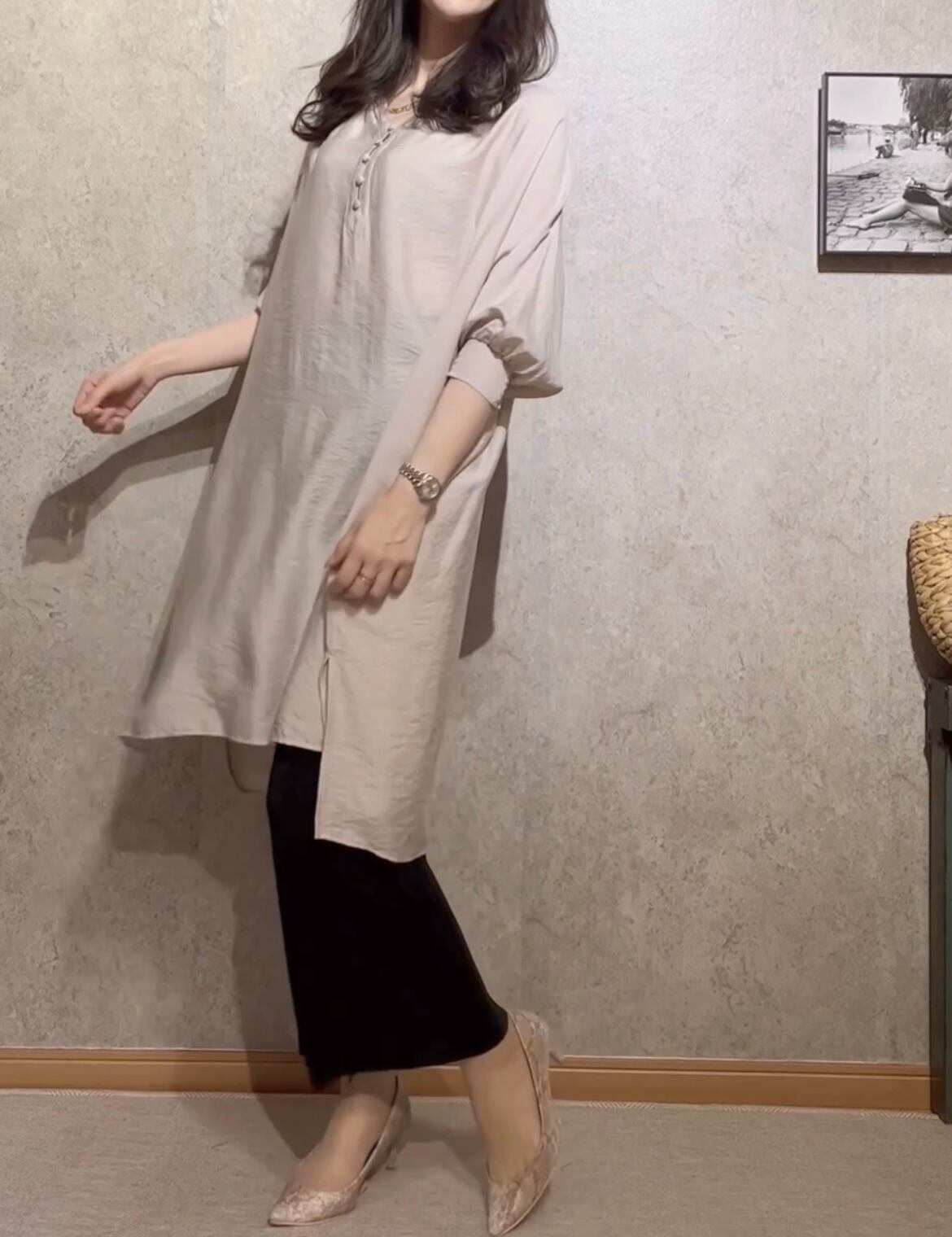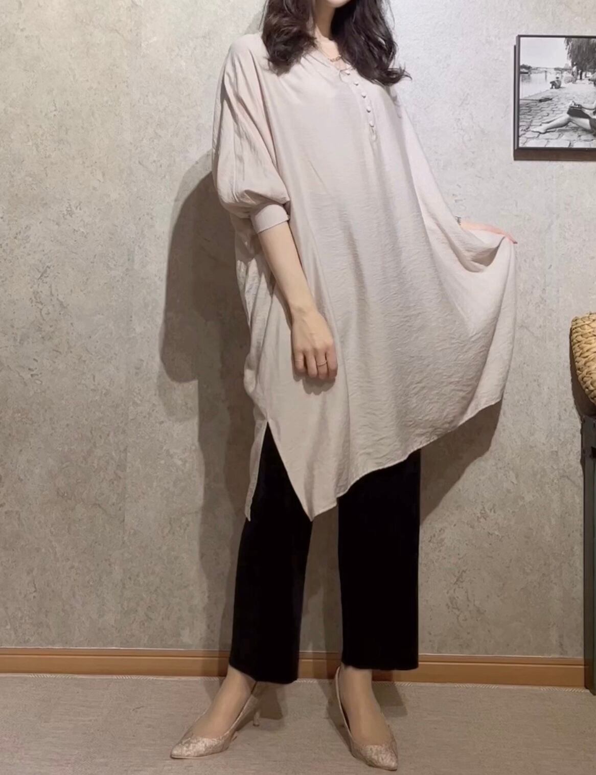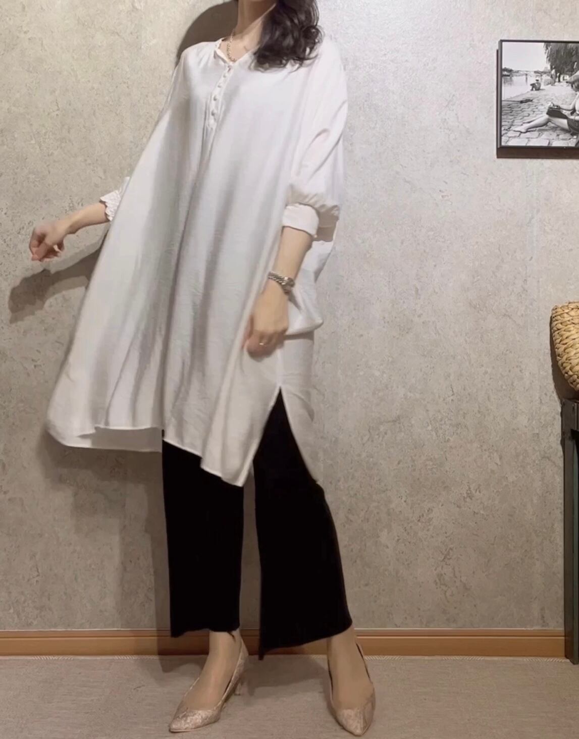 接触冷感ボリューム袖ビッグシルエット布帛チュニック
