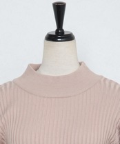 3色 【リブニットワンピース】 異素材 ハイネック ロングワンピース マキシ フレア スカート