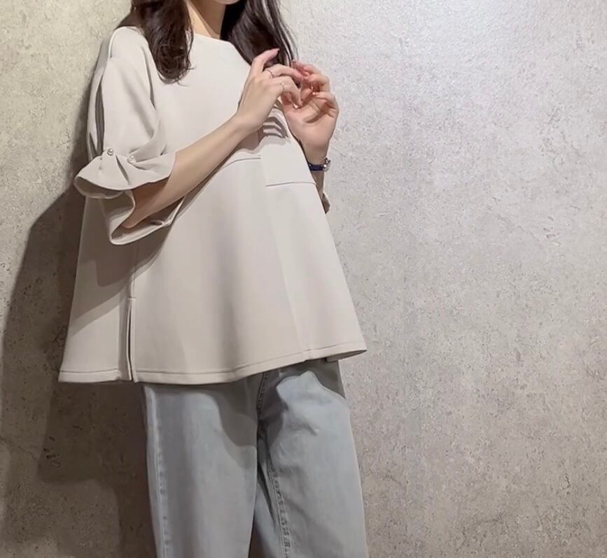 ●身頃を切り替えることでシンプルになりすぎず、スタイリングにアクセントをプラス。