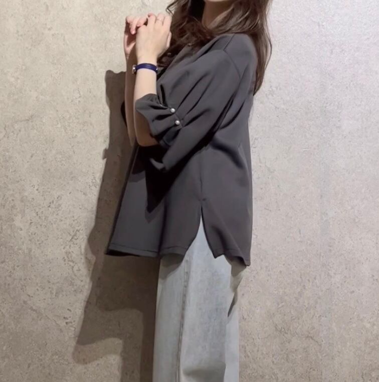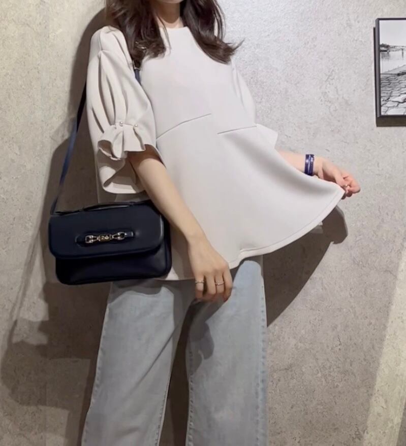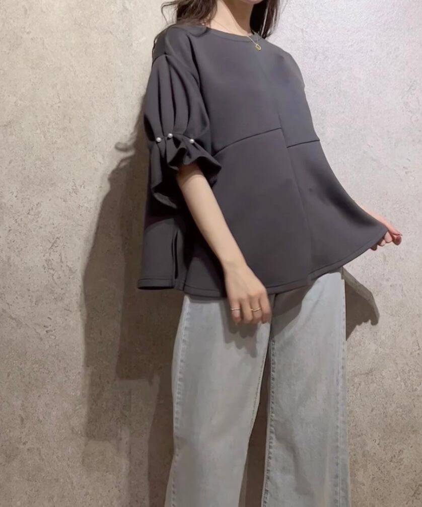 SALE♡ふんわり袖パールフレアトップス 着心地ふんわりAライントップス 半袖 ブラウス