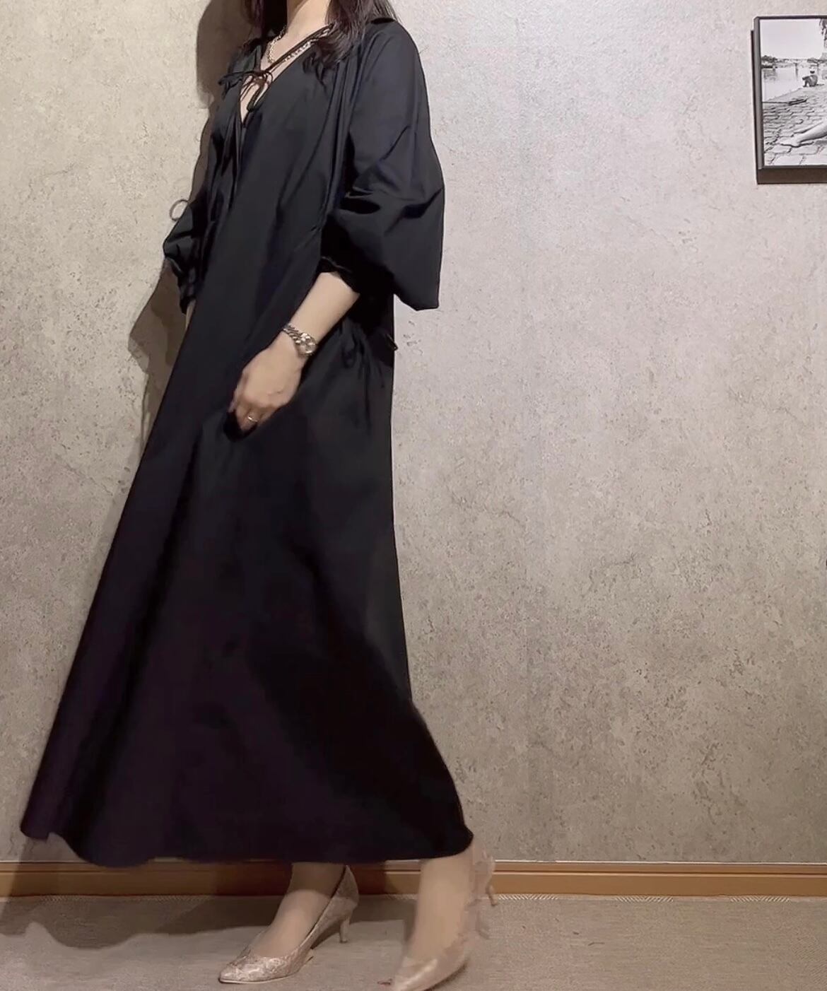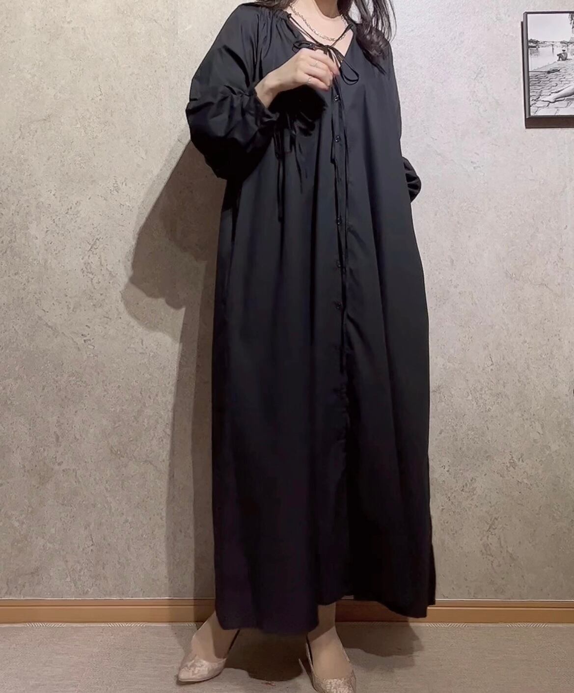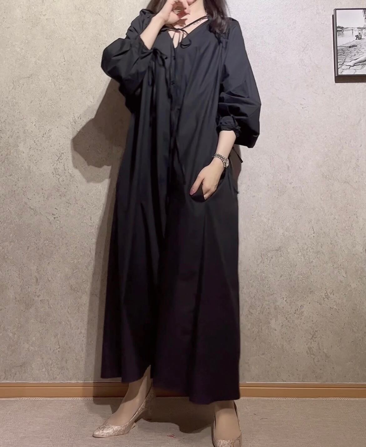 2wayゆったりシルエットロングシャツワンピース ドレス リボン着痩せ
