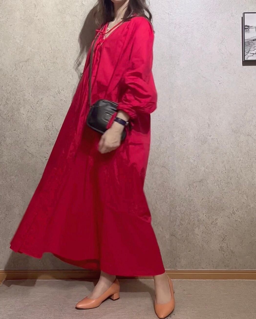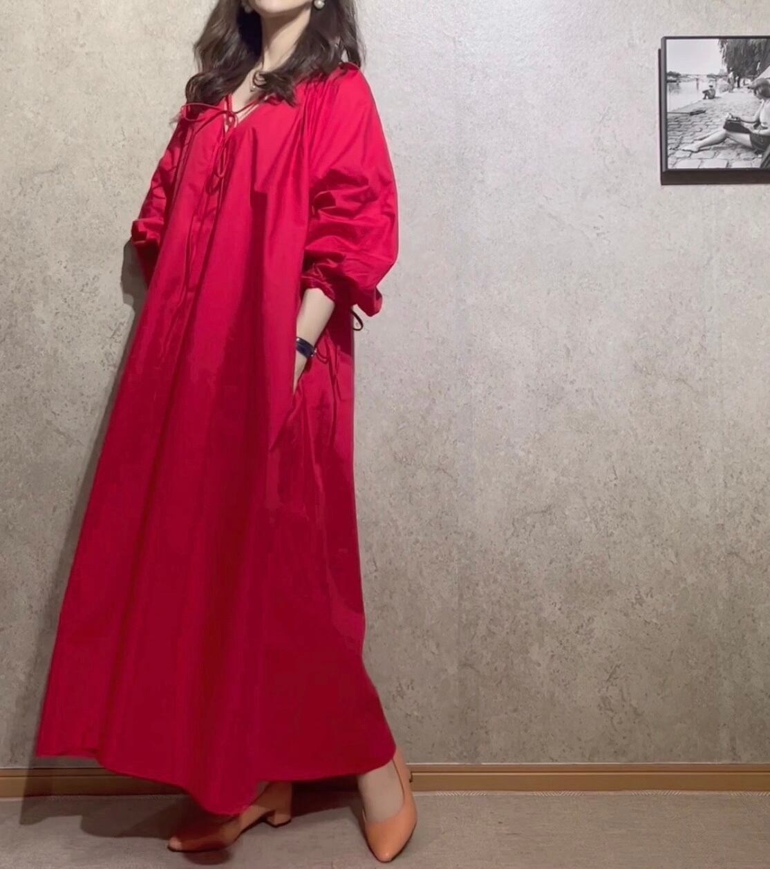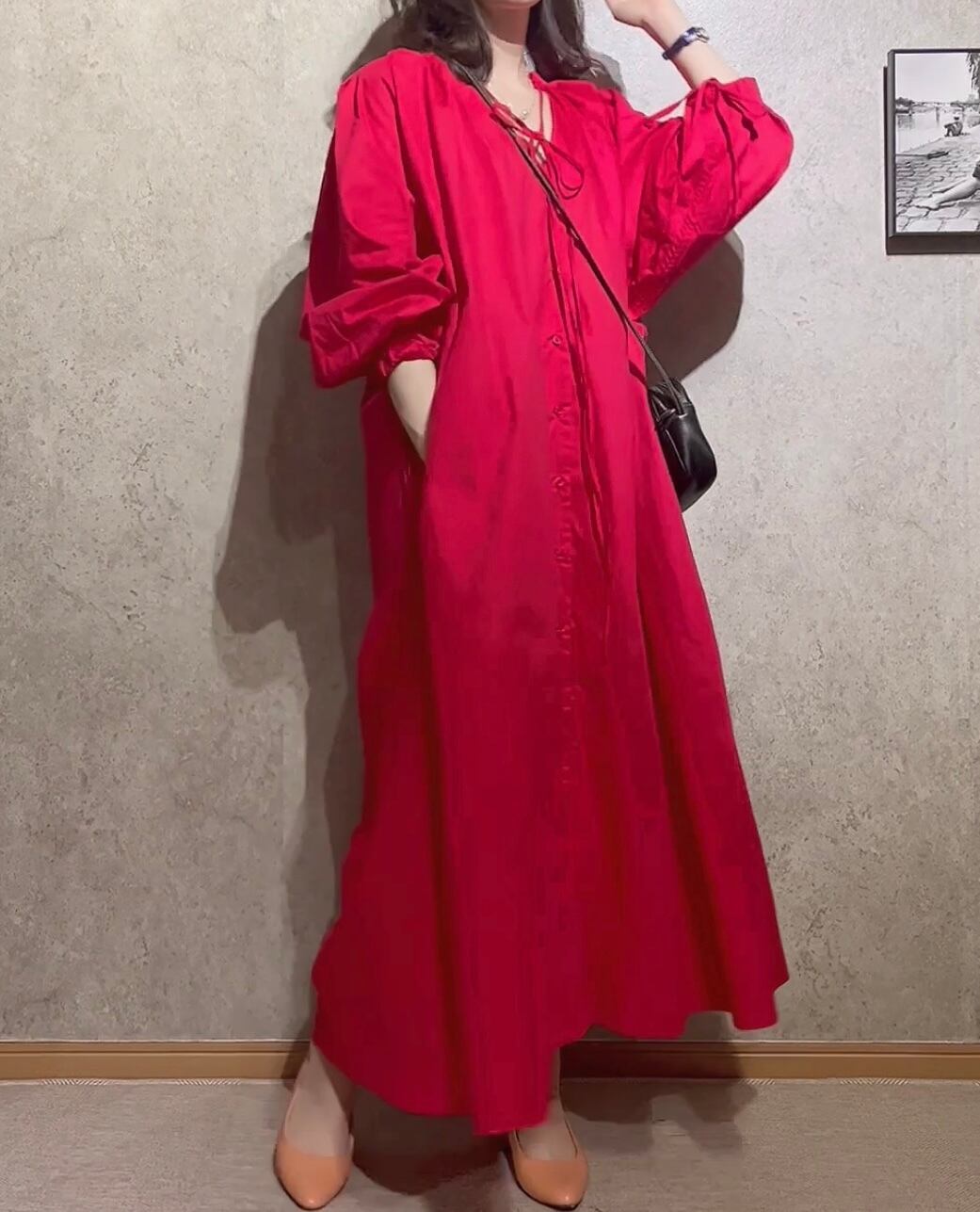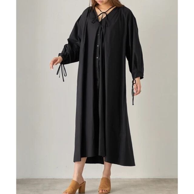 2wayゆったりシルエットロングシャツワンピース ドレス リボン着痩せ