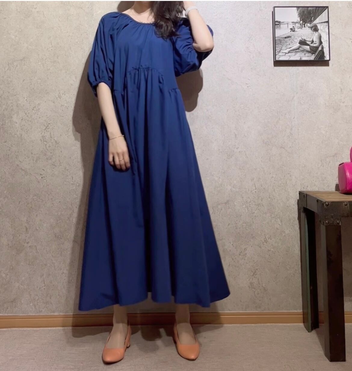3色 ふんわりシルエットギャザー切替ロングワンピース マキシ 春夏
