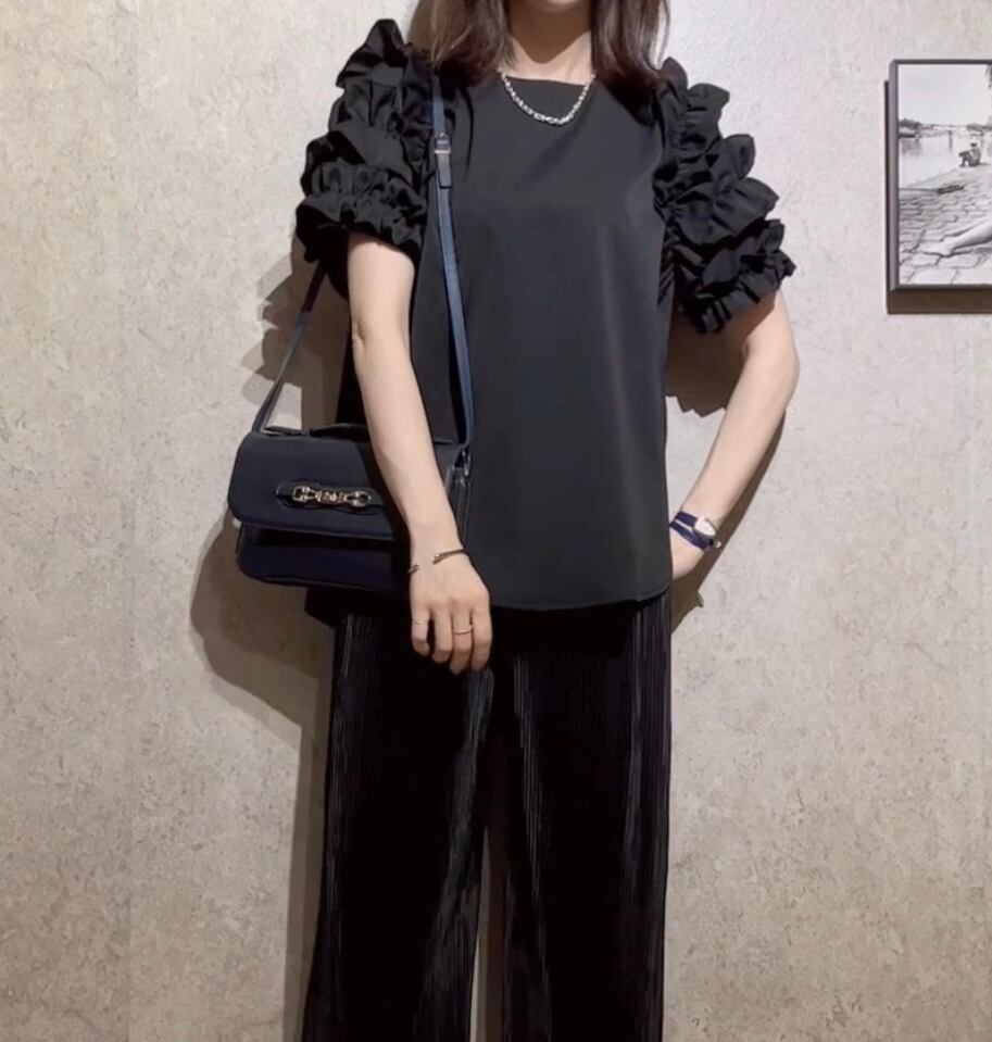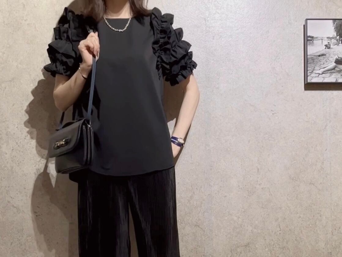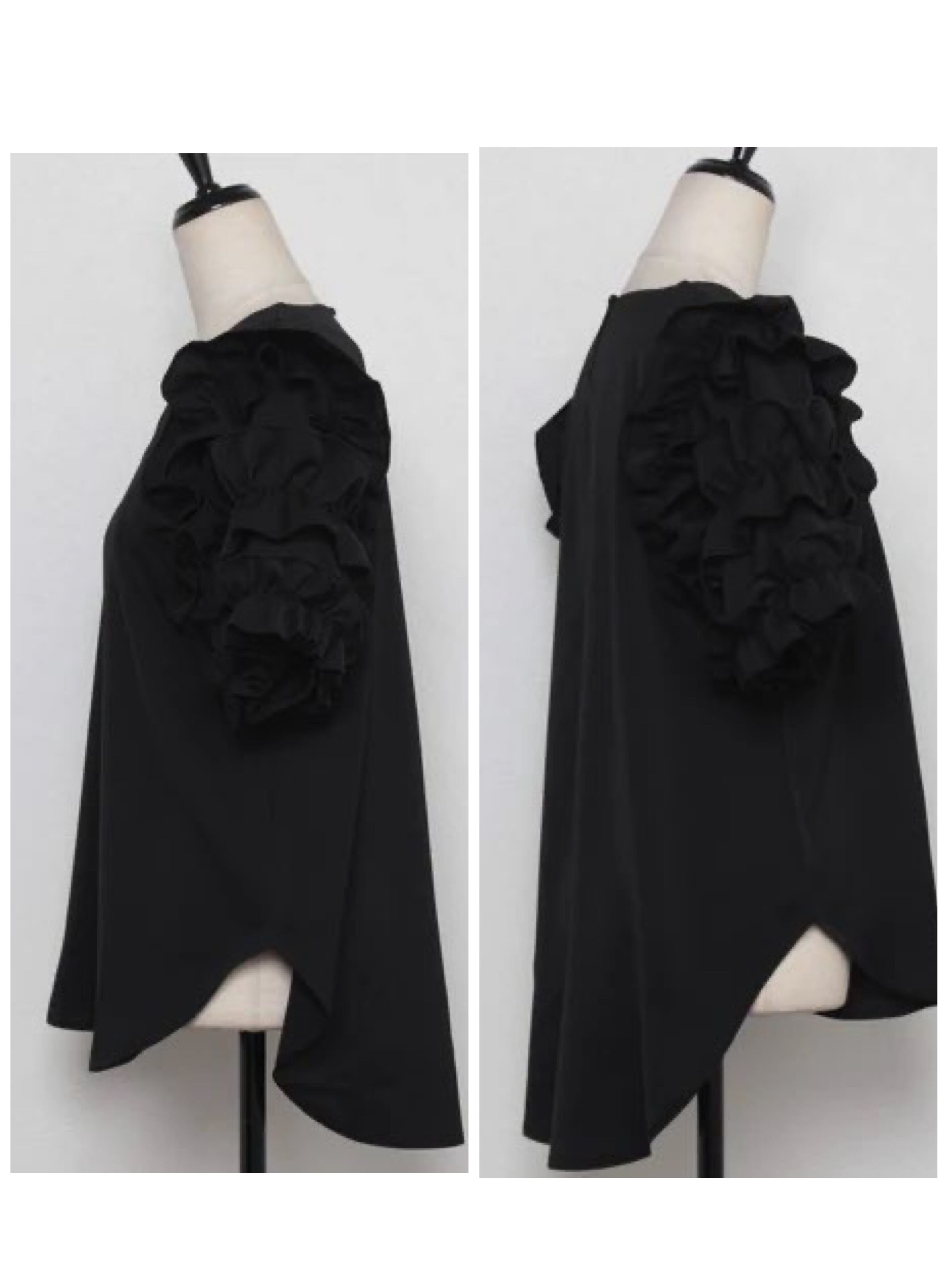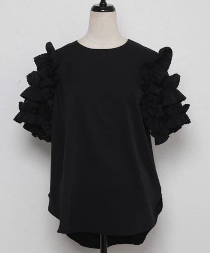 SALE ♡ベーシックカラー2色 コンシャススリーブプルオーバー ブラウス フリル フリルブラウス トップス Tシャツ