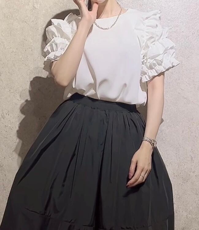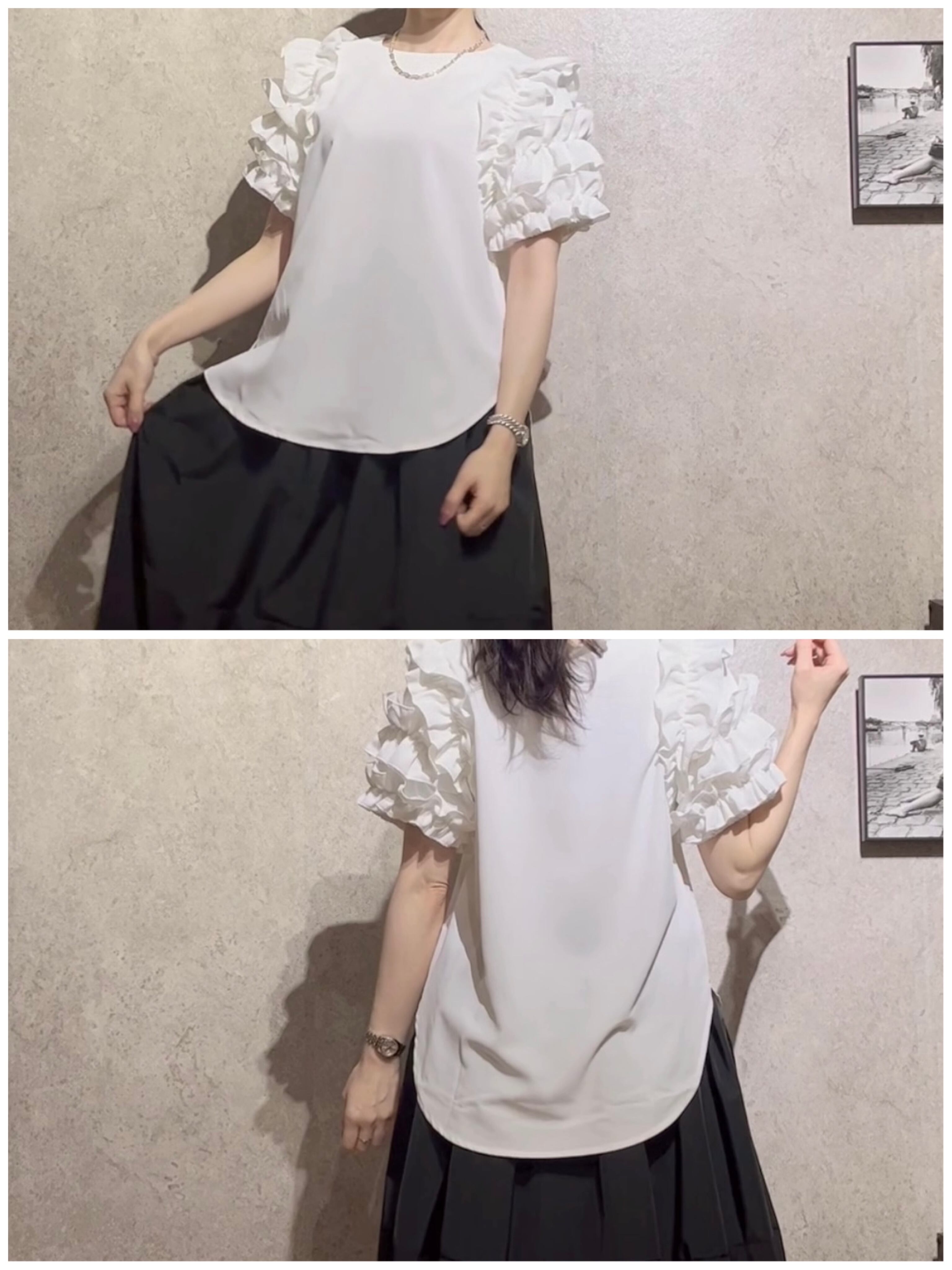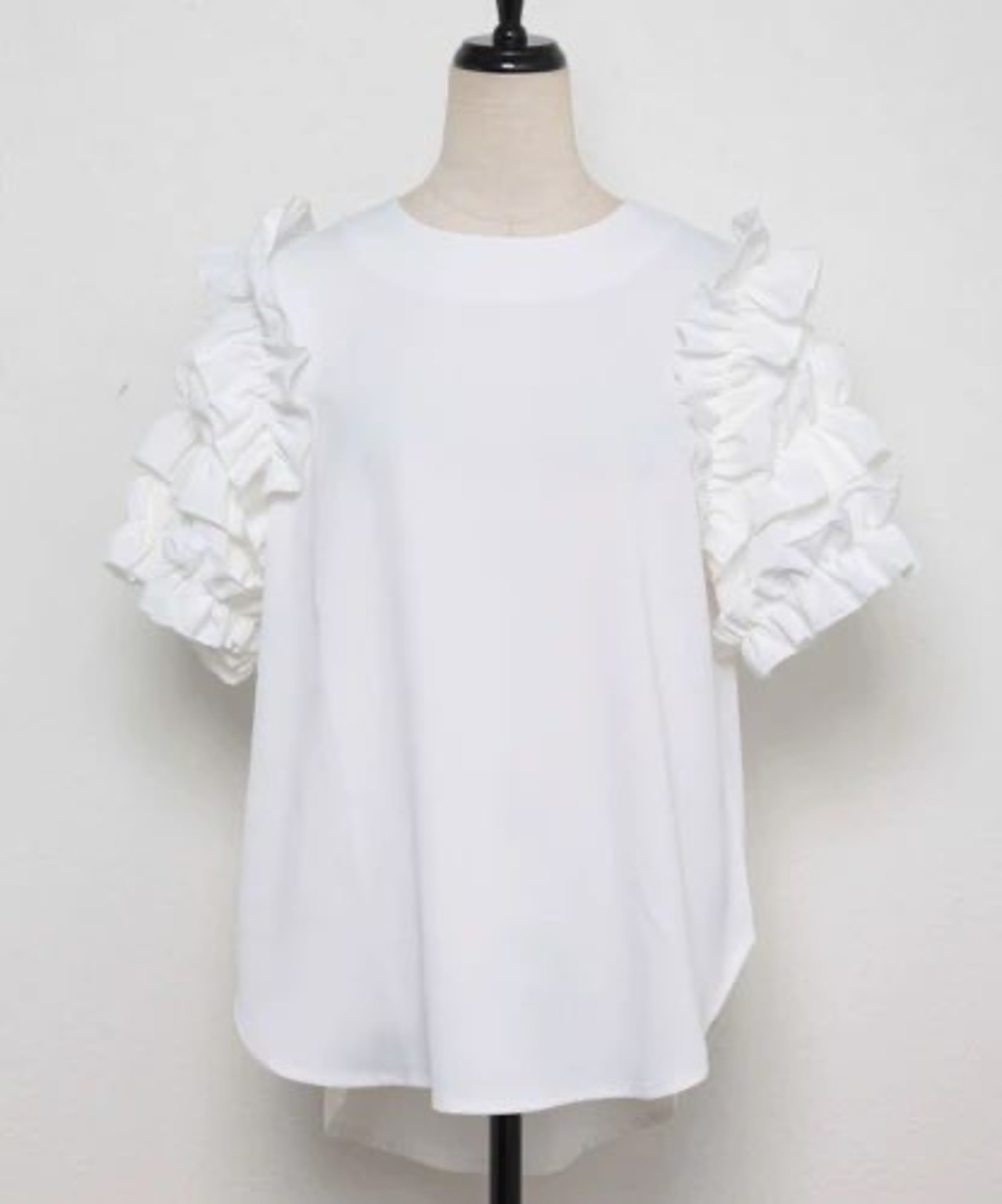 フレッシュな袖と着こなしの自由度が広いフリルがポイント。上品な雰囲気を纏うだけで、女性らしい魅力がUPします。