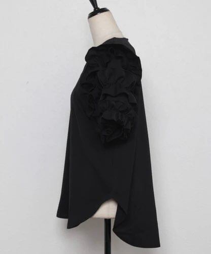 コンシャスな袖とフリルが取り入れられたデザインが魅力的なプルオーバーブラウス。