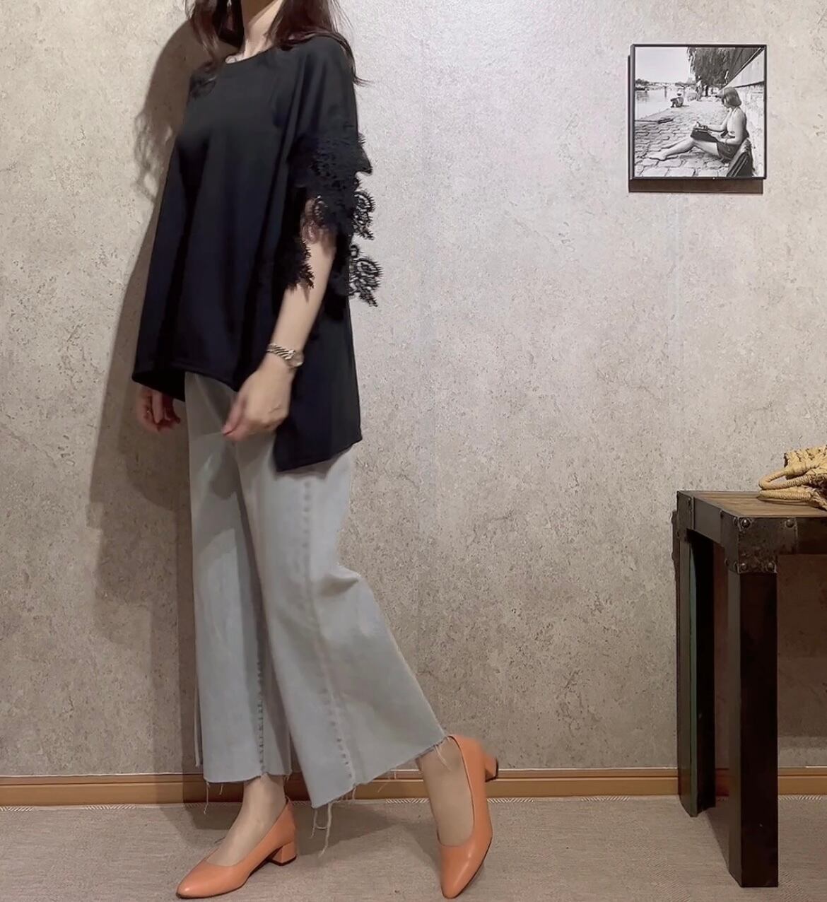 SALE♡4カラー袖レースゆったりデザインTOPS ふんわり