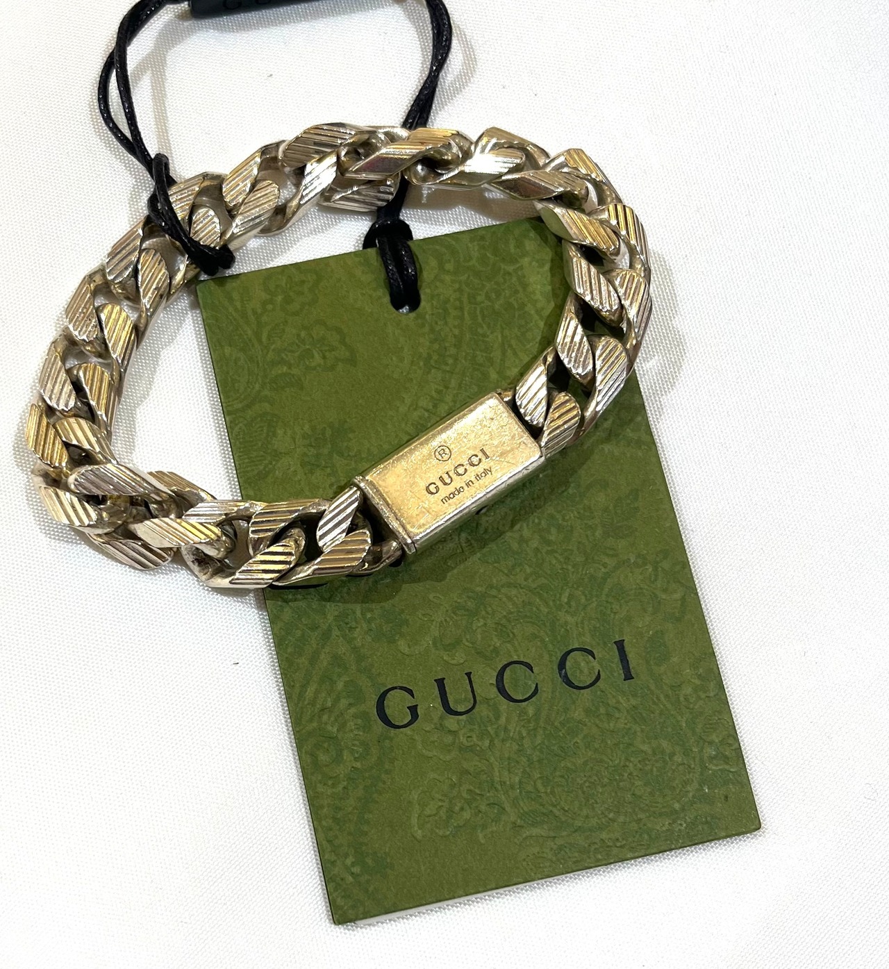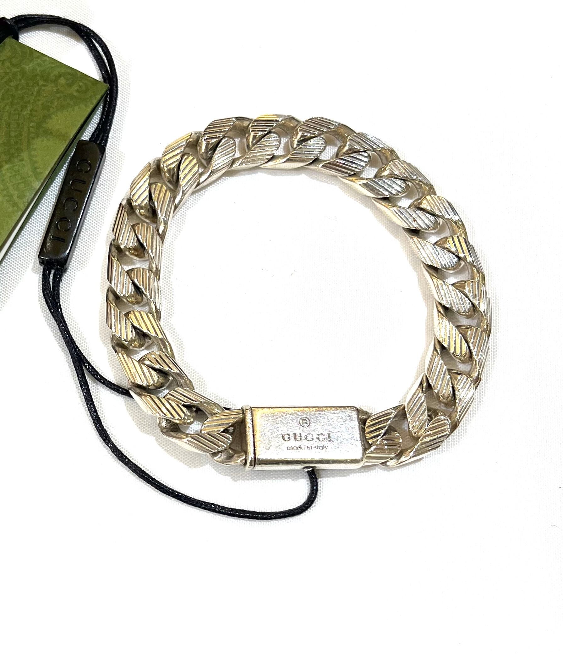 GUCCI 極太 喜平デザイン ストライプ チェーン ブレスレット SV925 BRACELET シルバーグッチ アクセ