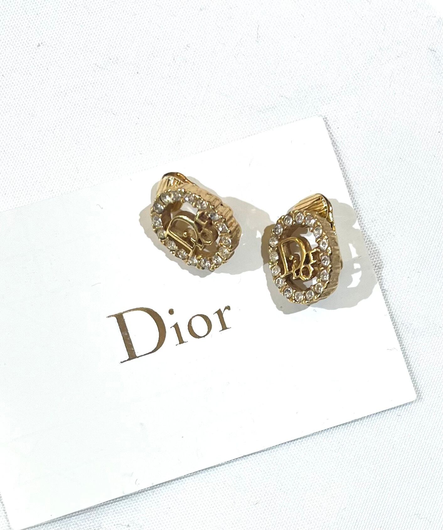 0515 Christian Dior ストーン×GDモチーフ イヤリング クリスチャンディオール earrings accessory アクセ
