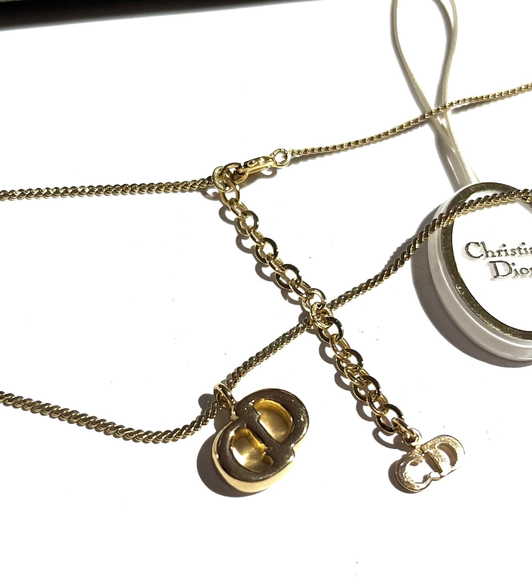 1134VINTAGE Christian Dior ストーンCDロゴ リバーシブル ネックレス クリスチャンディオール ヴィンテージ アンティーク アクセサリー結婚式ブライダル ブランド