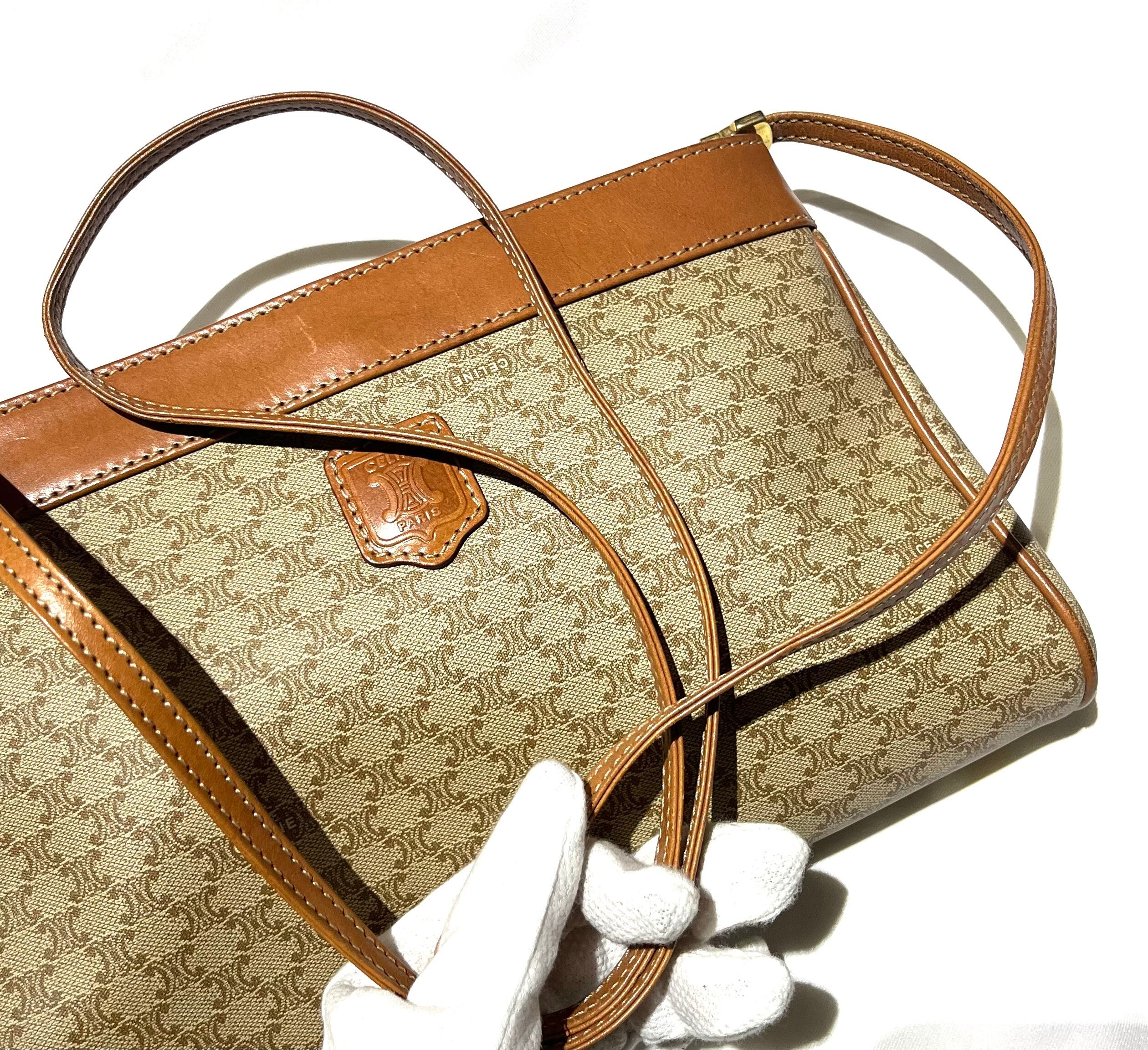 1149VINTAGE CELINE マカダム 2wayトリオンフレザーバッグモチーフショルダーバッグ セリーヌ tote bag leather ヴィンテージ財布チェーンウォレット