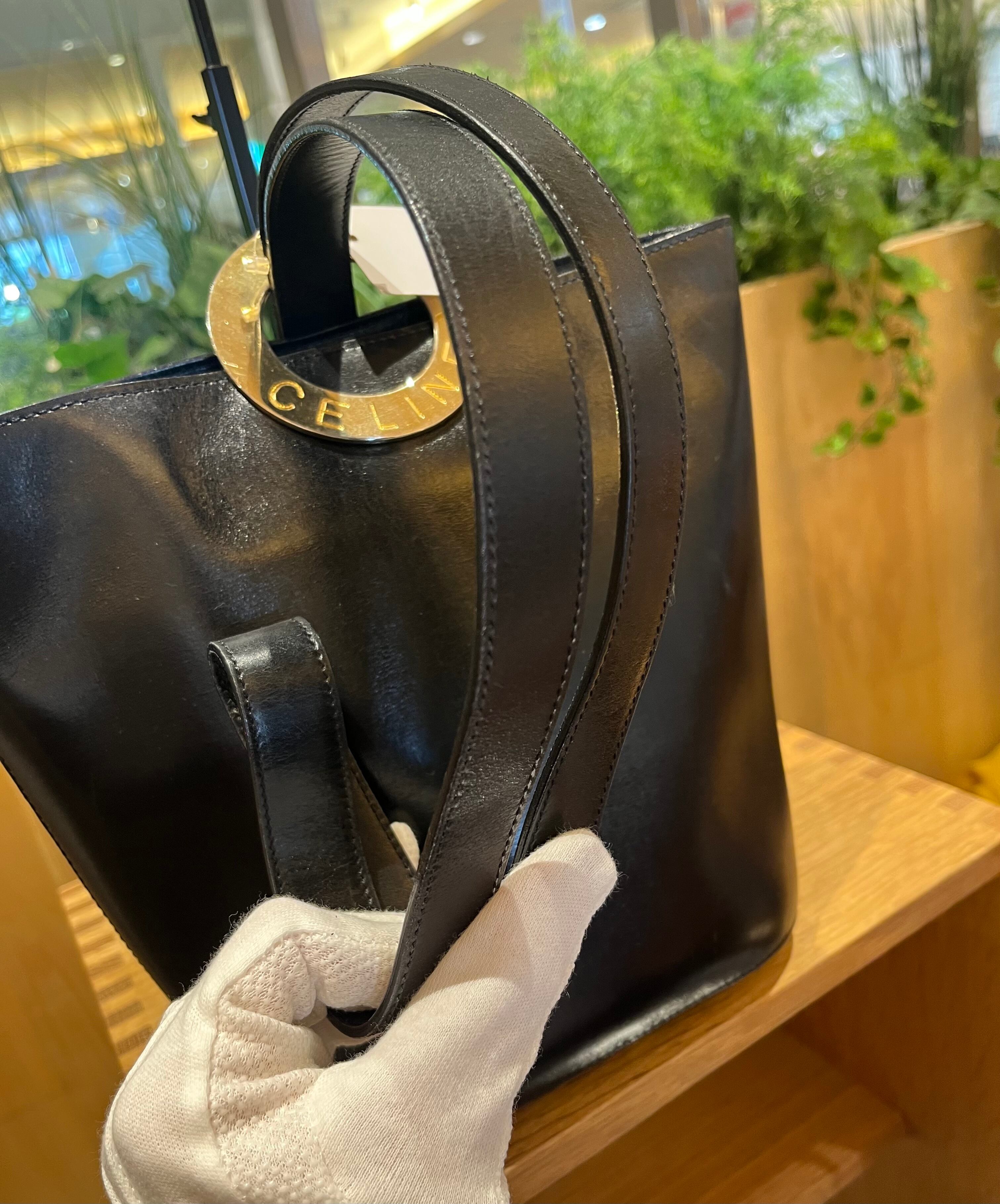 激レアVINTAGE CELINE サークル金具×レザーショルダーバッグ セリーヌ tote shoulder bag leather ヴィンテージ チェーンウォレット フォーマル