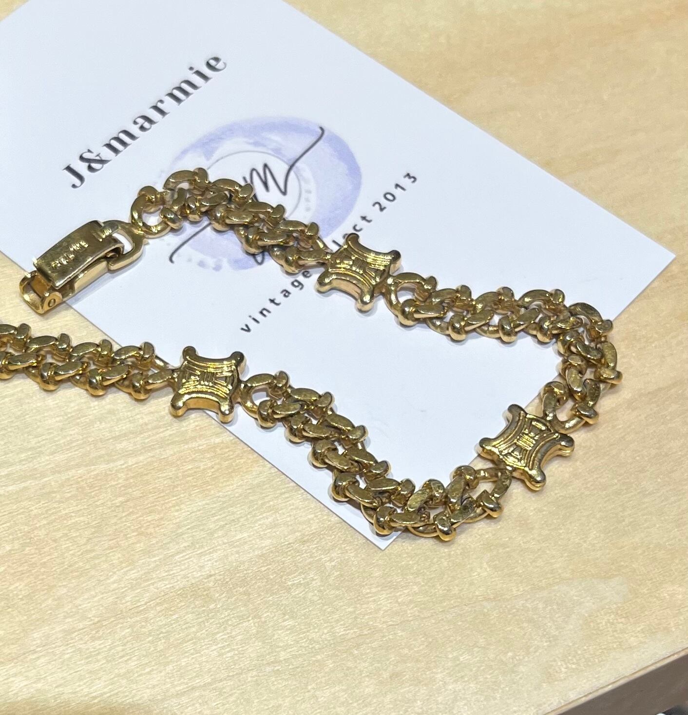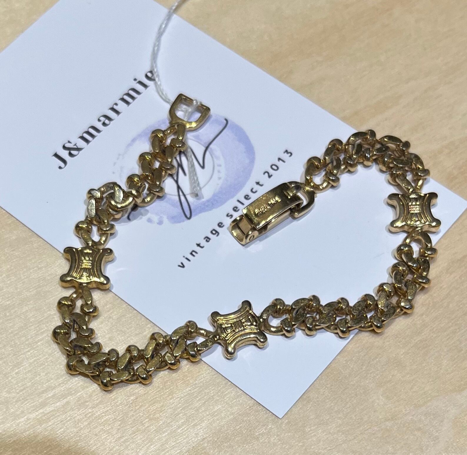 1291VINTAGE CELINE ブラゾンモチーフチェーンブレスレット ヴィンテージ アンティーク クラシカル フラワー ミニ クリップ ナチュラル カジュアルブライダルジュエリ