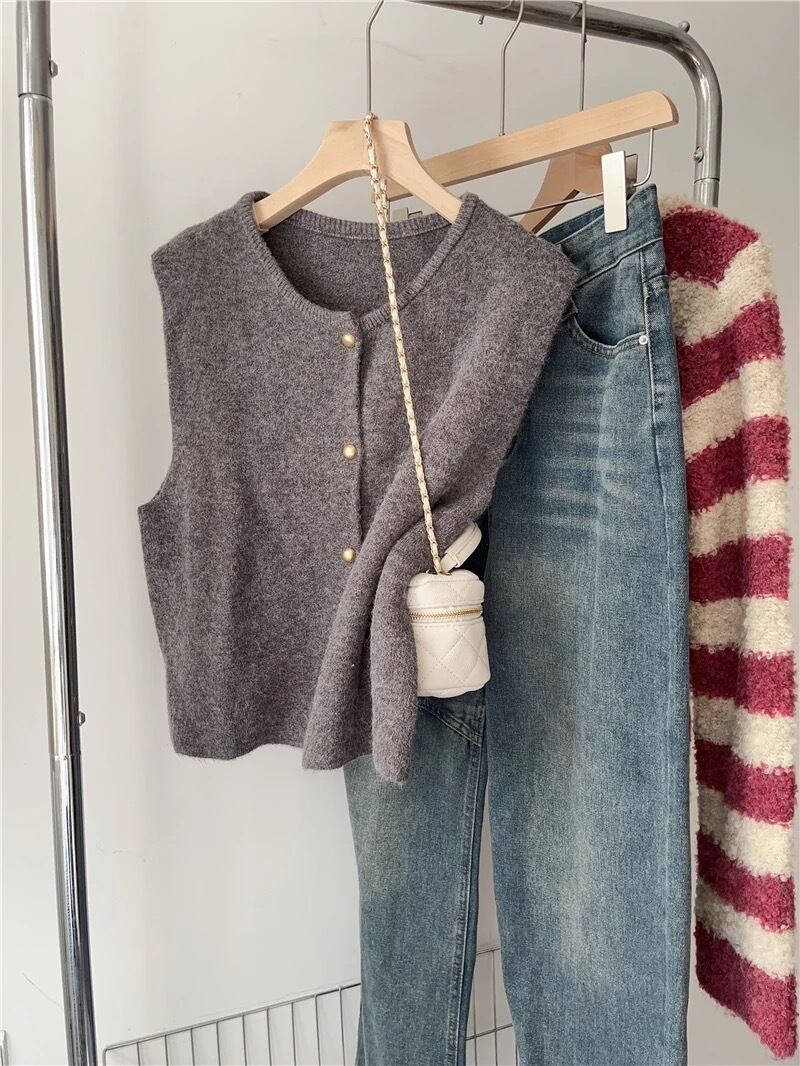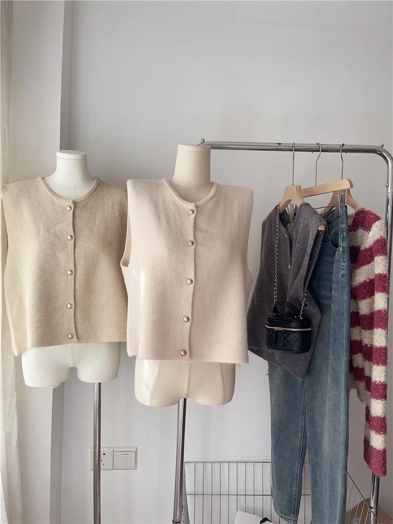 新作2025♡4色アンティークデザイン ニットベスト トップス ベスト ボタンニット