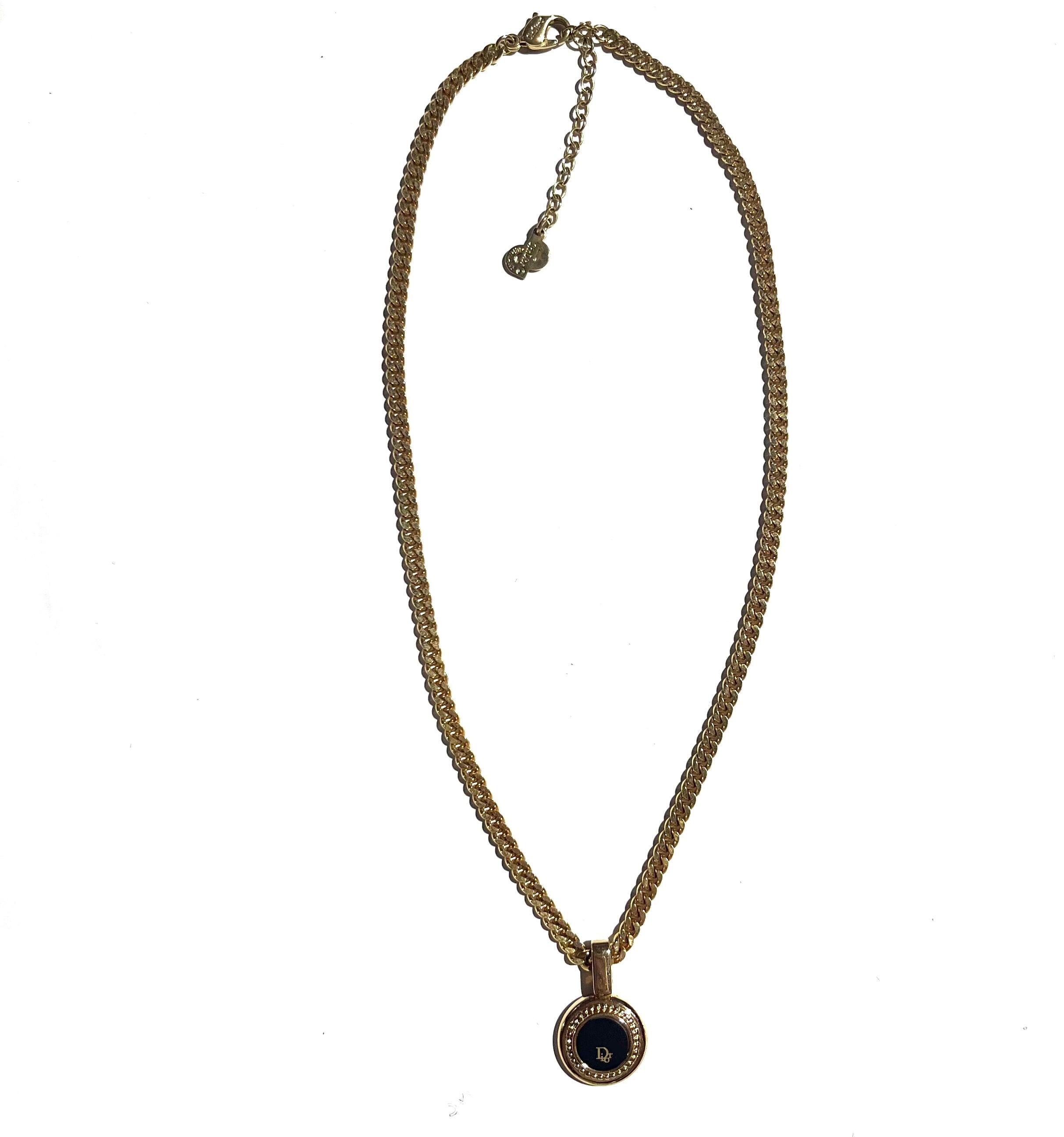 1431VINTAGE Christian Dior CDWロゴストーンネックレスクリスチャンディオール ヴィンテージ アンティーク アクセサリーストーン結婚式 リボン DIOR