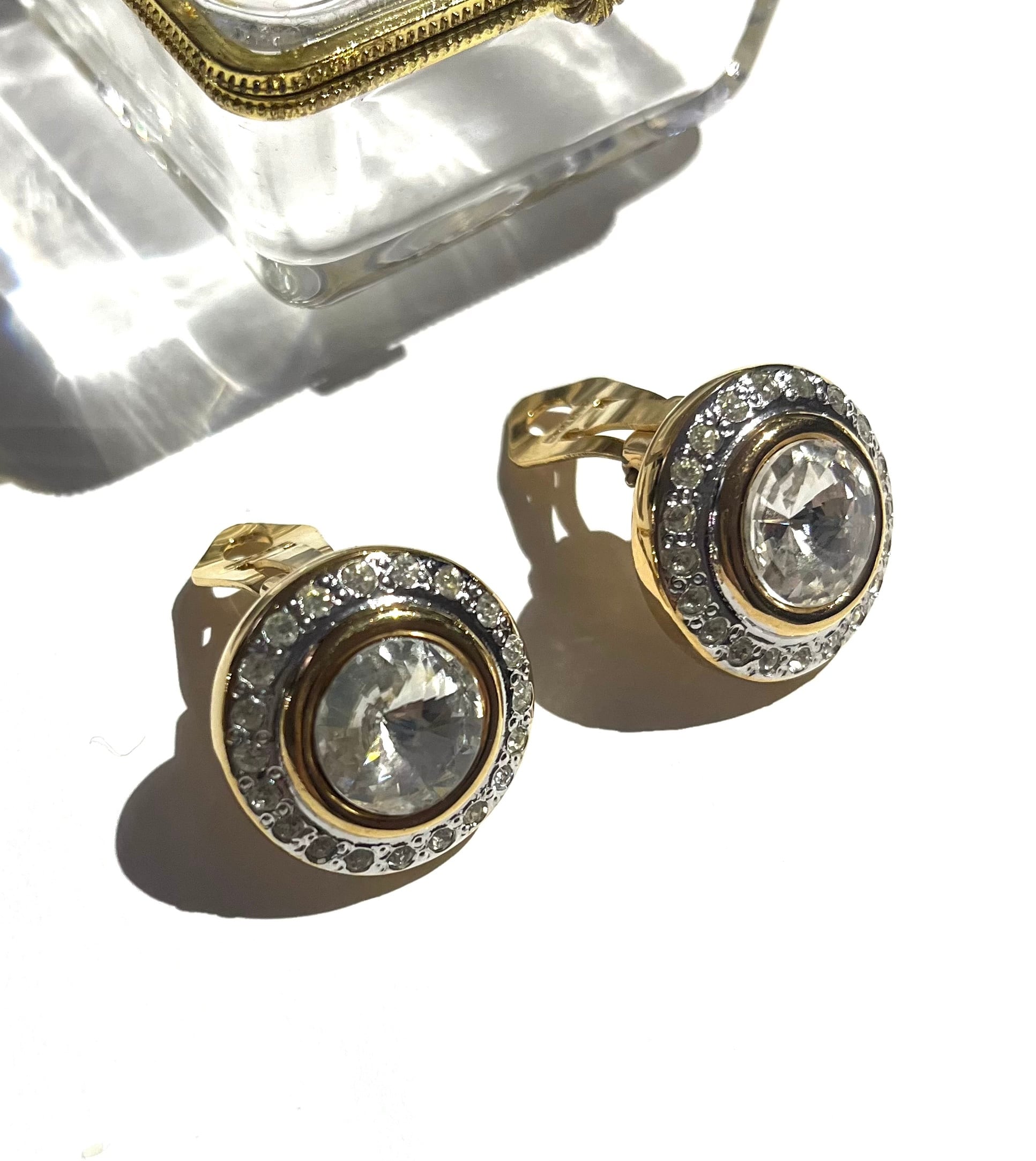 【CELINE 】VINTAGE EARRING多面ブリリアント イヤリングヴィンテージ ビジュ アンティーク クラシカル フラワー ミニ クリップ ナチュラル カジュアルブライダルジュエリ 1490 オールドセリーヌ