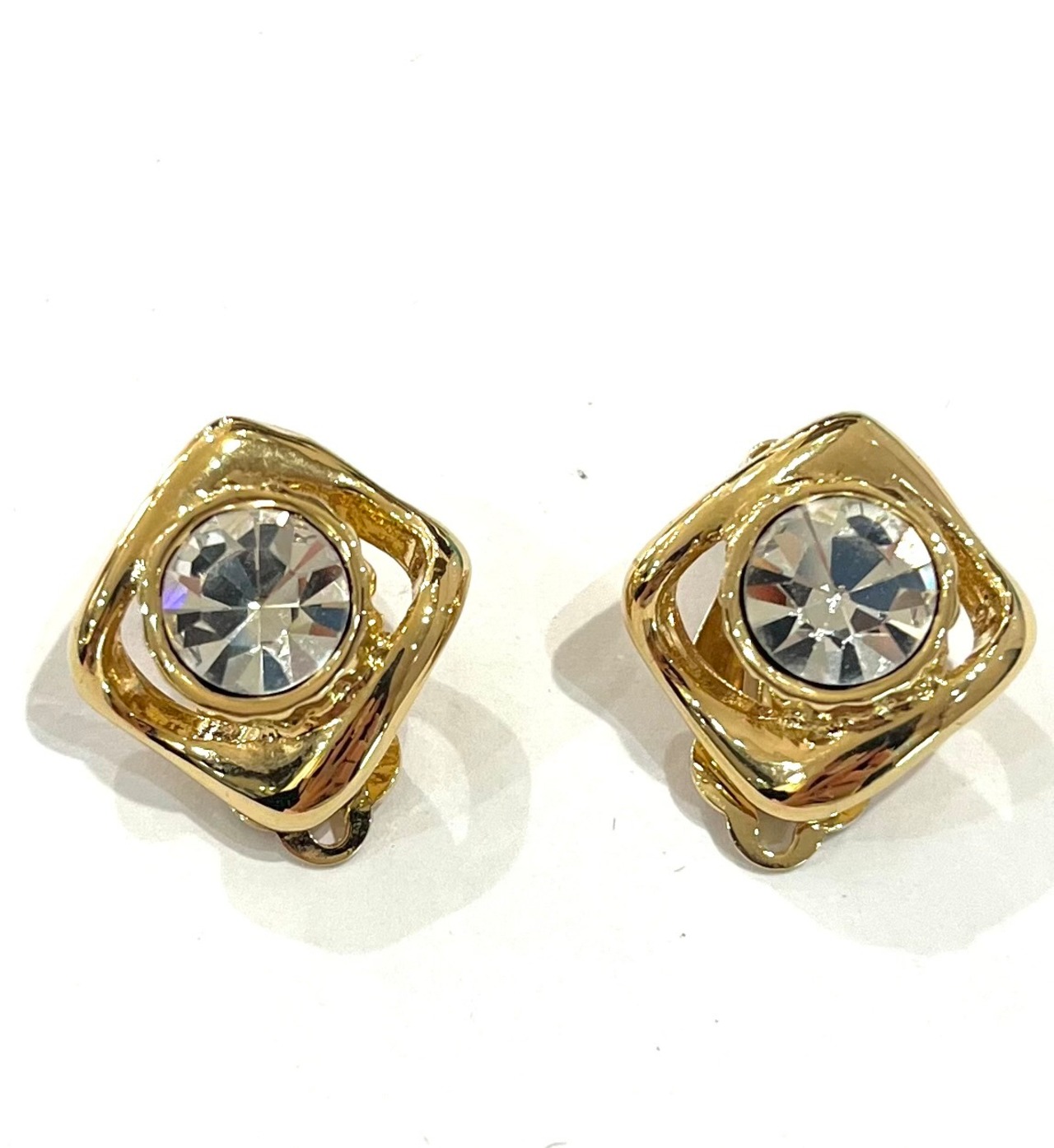1494 ダイヤモンドの輝き。YVES SAINT LAURENT YSL ストーン×ゴールド イヴ・サンローラン ヴィンテージ イヤリングメンズ コンビカラー ギフトプレゼントアンティーク ロゴ クリップ ギフト メンズ yves saint laurent