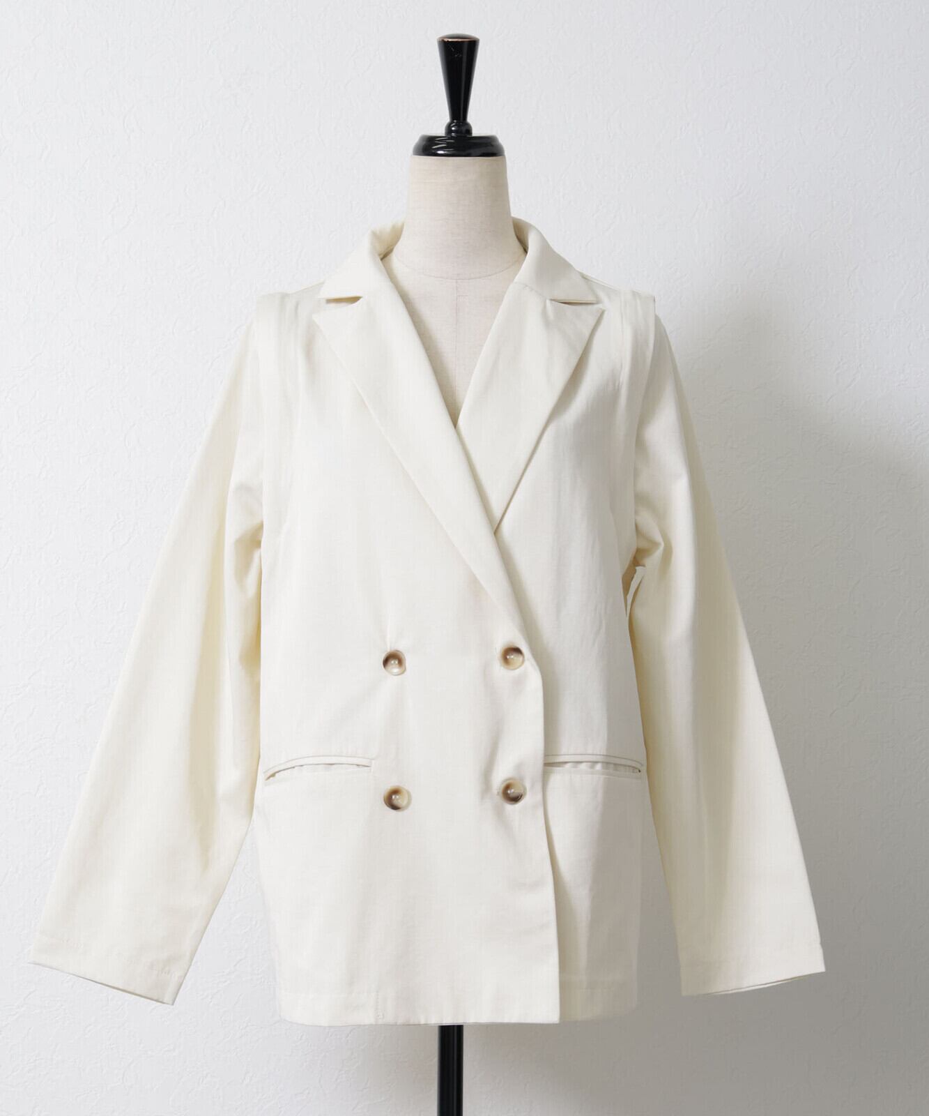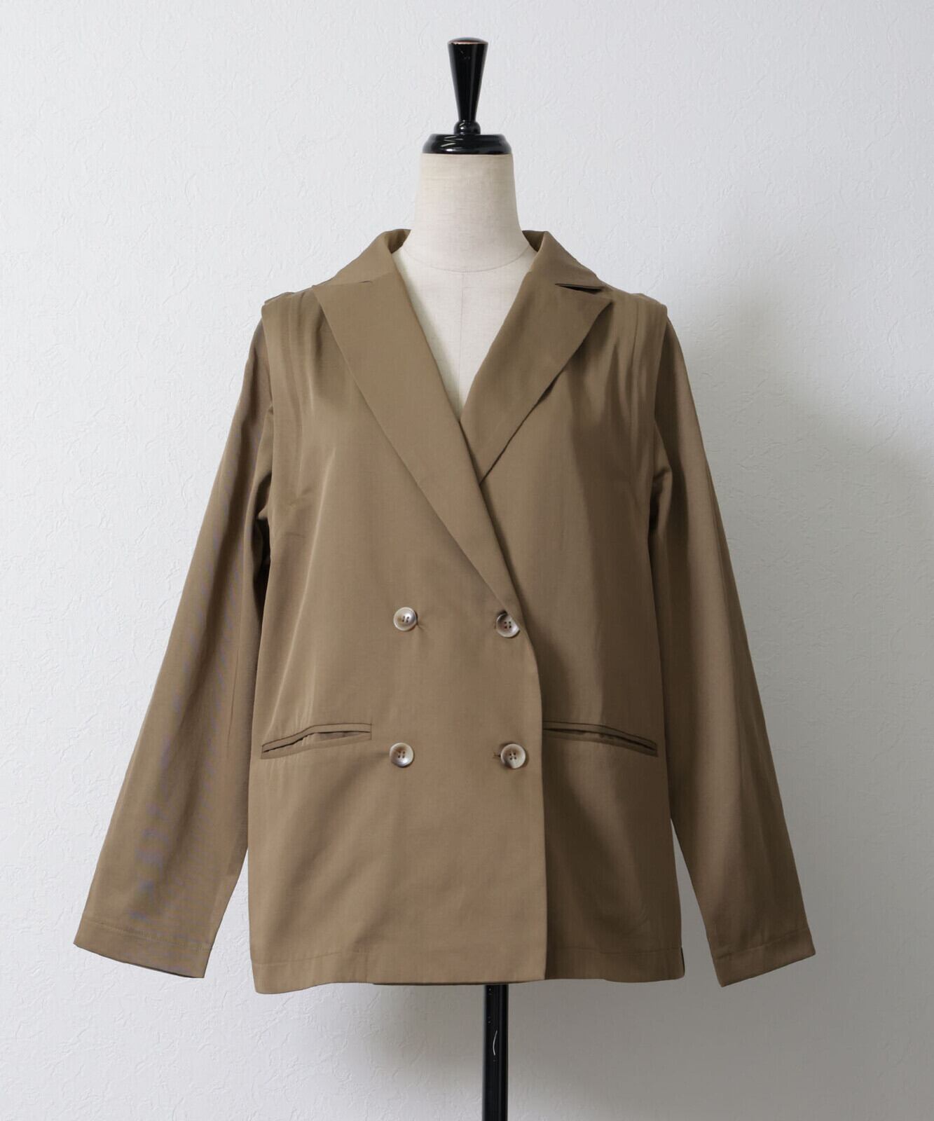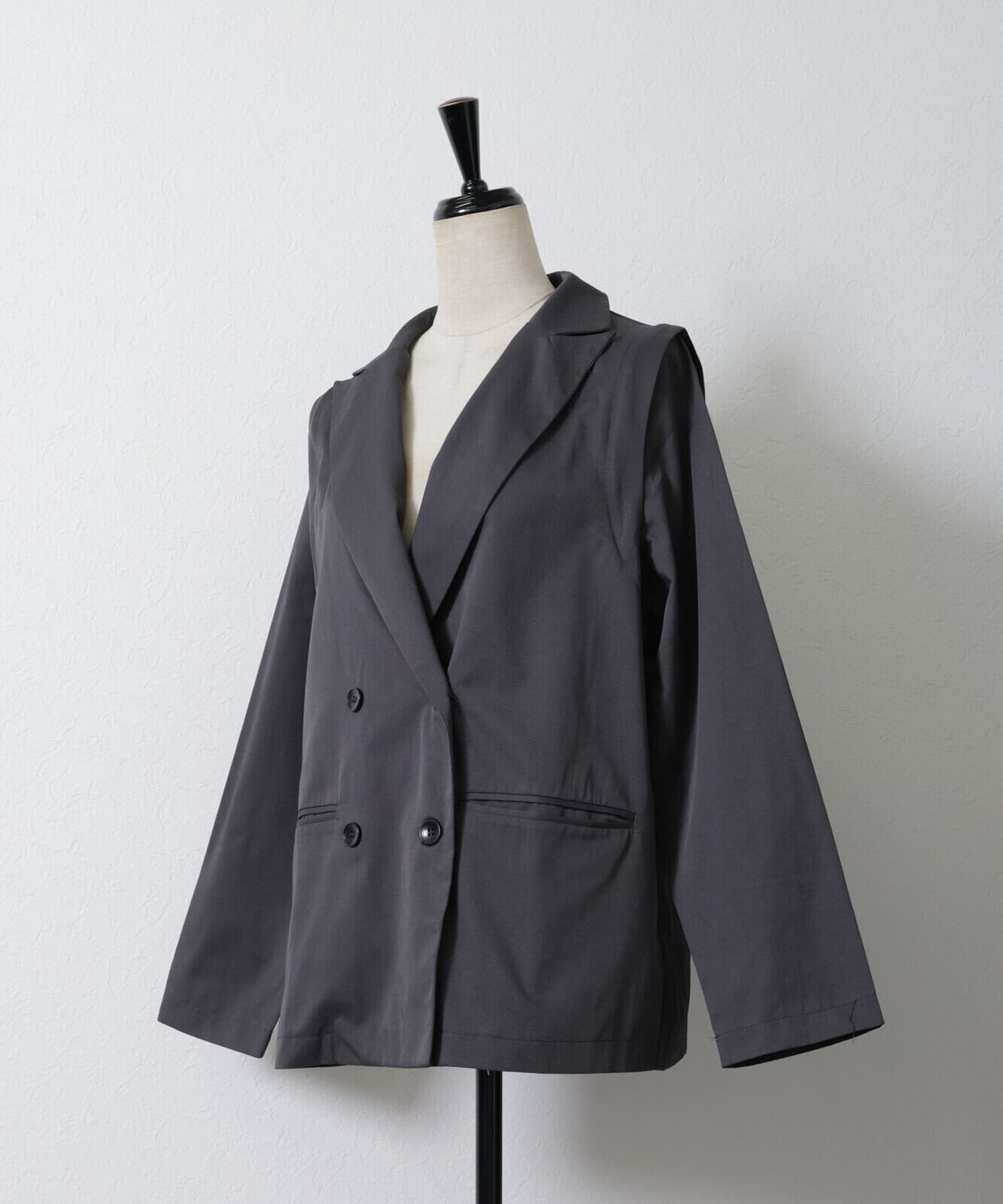 2025★3色袖取り外し可能2WAYテーラードジャケットジレベスト アウター 美ライン