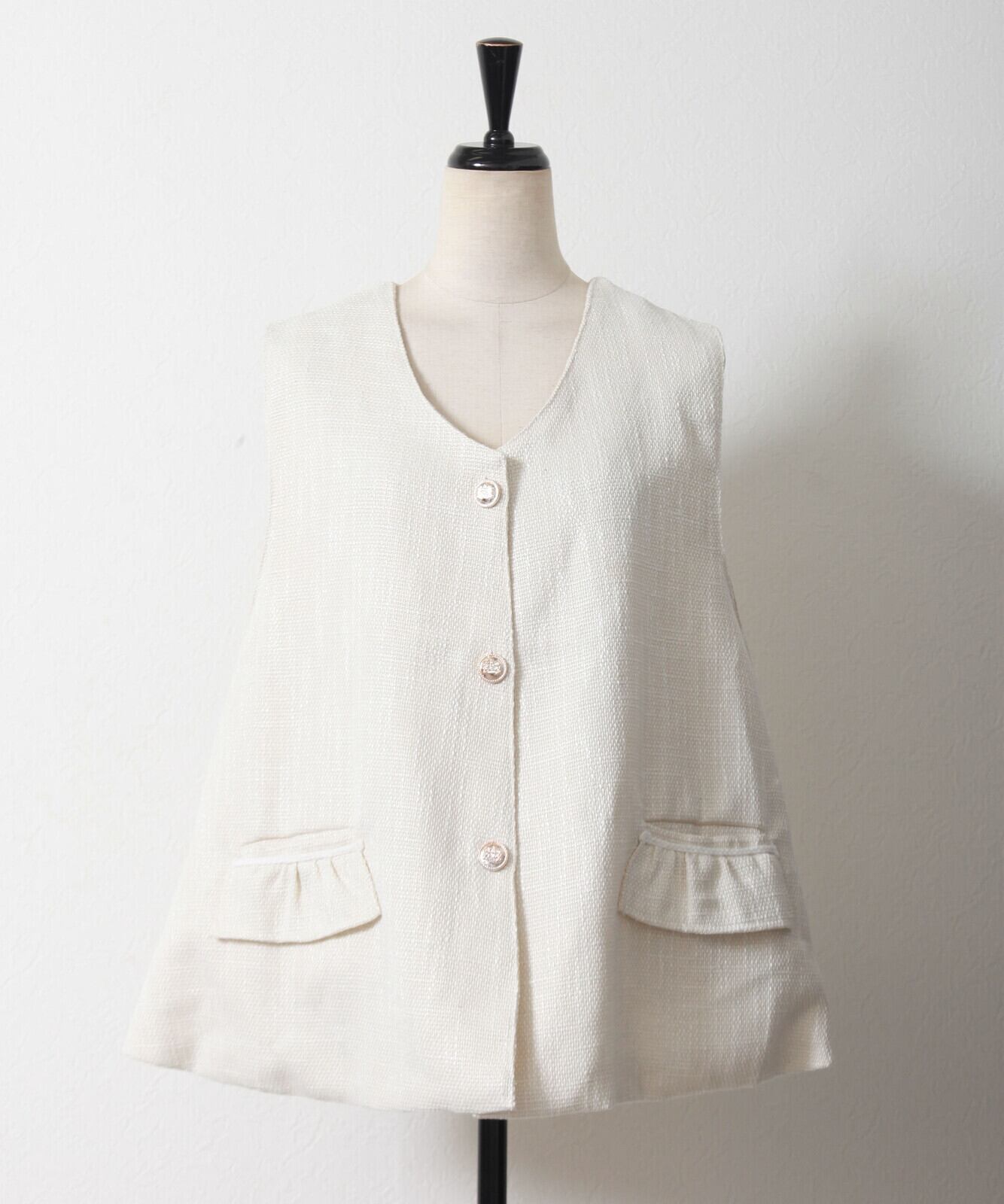 2025★3色ツイードAライン金ボタンベスト ジレ トップス 着痩せ フリーサイズ